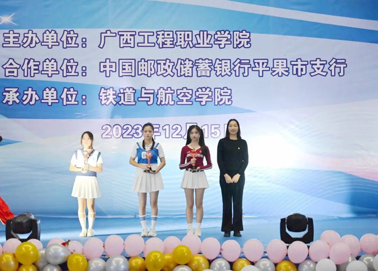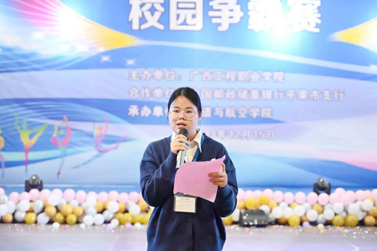 學校紀委書記、副校長彭高彬,中國郵政儲蓄銀行平果市支行行長羅顯勇,中國銀行平果市支行行長馬忺翊,廣西平果順全隆建材有限公司第二分公司總經(jīng)理李宇,鐵道與航空學院黨支部書記、副院長廖嬌,鐵道與航空學院黨支部副書記宋蓉、辦公室主任黃晶晶、分團委書記謝小玲,中國郵政儲蓄銀行平果市支行客戶經(jīng)理呂玲、潘文靜等出席比賽現(xiàn)場,學院全體師生到場觀看比賽。