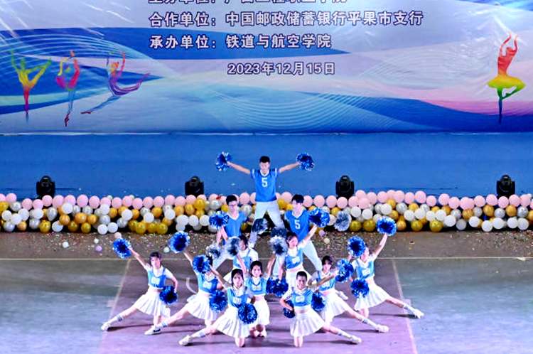 為豐富校園文化生活,展現(xiàn)學生蓬勃向上的精神風貌和青春活力,12月15日,2023年“啦啦操推廣之星”校園爭霸賽在學校體育館舉行,比賽由廣西工程職業(yè)學院主辦,中國郵政儲蓄銀行平果市支行合作共辦,鐵道與航空學院承辦。
