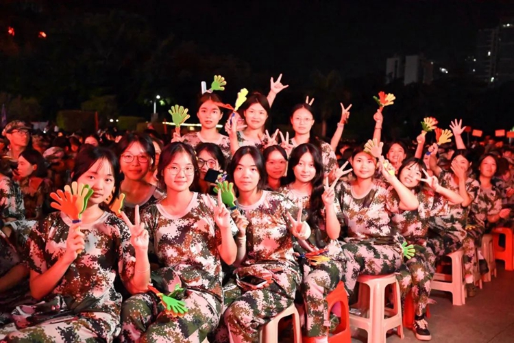 晚會現(xiàn)場燈光絢爛,氣氛熱烈。2024級新同學(xué)們的臉上綻放著燦爛的笑容,眼睛里閃爍著興奮的光芒。同學(xué)們手持手機(jī),閃光燈如繁星般閃爍,營造出夢幻般的校園氛圍。