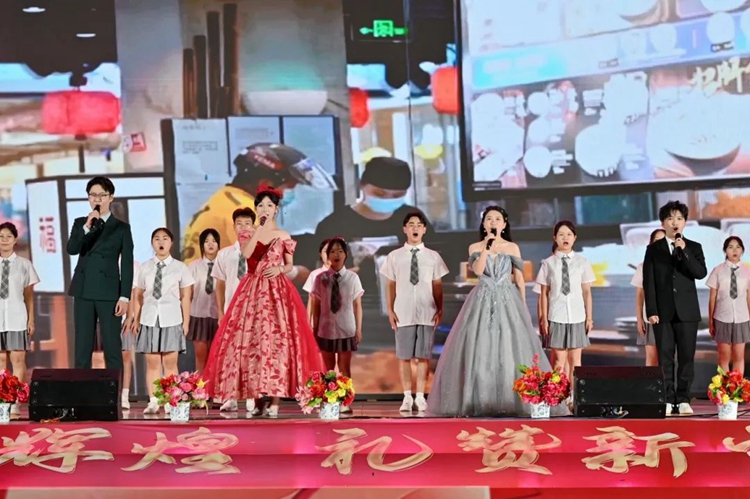 今夜,燈光璀璨如星,夢想的火焰被悄然點(diǎn)燃。師生們歡聚一堂,共同慶祝國慶。