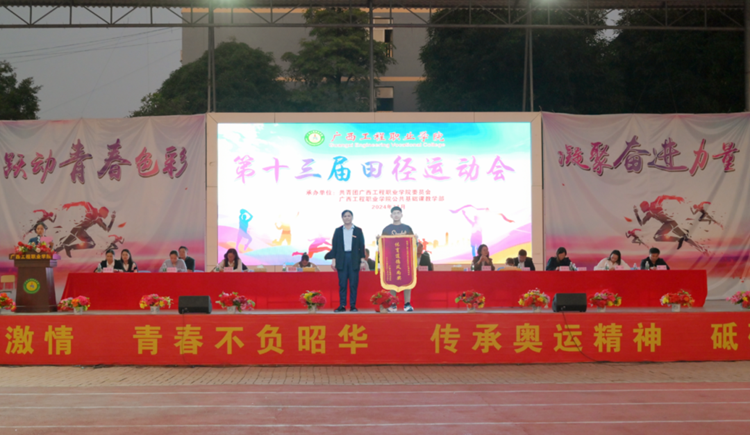 黨委副書記、校長羅艷妮致閉幕詞,并宣布廣西工程職業(yè)學(xué)院2024年第十三屆田徑運(yùn)動(dòng)會(huì)圓滿閉幕。