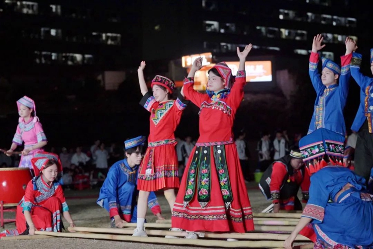 本次篝火晚會精心編排多個精彩節(jié)目,涵蓋山歌串燒、民族舞蹈、非遺表演等多種形式。從 “山歌繞梁·余韻未歇” 的悠揚歌聲,到 “三月春風拂人間·民族文化永傳承” 的多彩演繹,再到 “火焰不息·狂歡不止” 的熱烈氛圍,將全方位呈現(xiàn)民族文化魅力,為師生們帶來一場令人驚艷的視聽盛宴。
