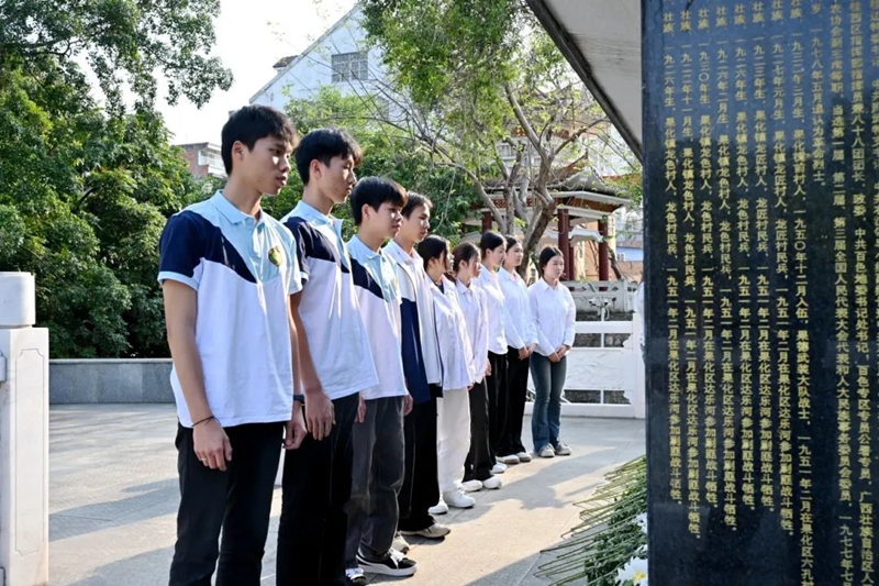 英魂雖逝,精神猶存。17點(diǎn)許,活動(dòng)正式開始。首先向平果市革命烈士紀(jì)念碑敬獻(xiàn)花圈。在革命烈士紀(jì)念碑前,全體人員神情莊嚴(yán)肅穆,向著革命烈士紀(jì)念碑,集體默哀三分鐘。隨后,在蒙本曼同志的帶領(lǐng)下,全體人員有序向革命烈士紀(jì)念碑獻(xiàn)上紀(jì)念小白花并瞻仰烈士紀(jì)念碑,深切緬懷革命先烈不朽偉績。