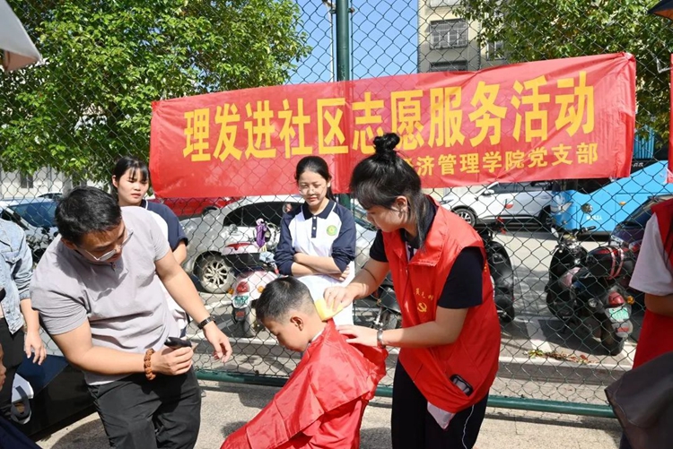 經(jīng)濟管理學院黨支部開展免費理發(fā)服務活動,我們的志愿者與居民親切交談,耐心傾聽每位居民的理發(fā)要求,精準提供剪發(fā)服務,讓他們享受到了貼心服務和家人般的溫暖。