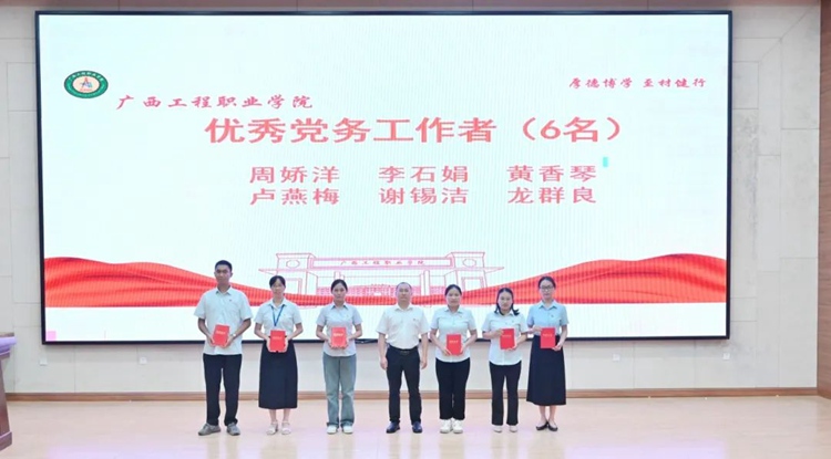 會(huì)上,學(xué)校紀(jì)委書記、副校長彭高彬宣讀了《中共廣西工程職業(yè)學(xué)院委員會(huì)關(guān)于表彰優(yōu)秀共產(chǎn)黨員、優(yōu)秀黨務(wù)工作者和先進(jìn)基層黨組織的決定》。與會(huì)學(xué)校黨政領(lǐng)導(dǎo)班子分別為受表彰的優(yōu)秀共產(chǎn)黨員、優(yōu)秀黨務(wù)工作者和先進(jìn)基層黨組織頒獎(jiǎng)。