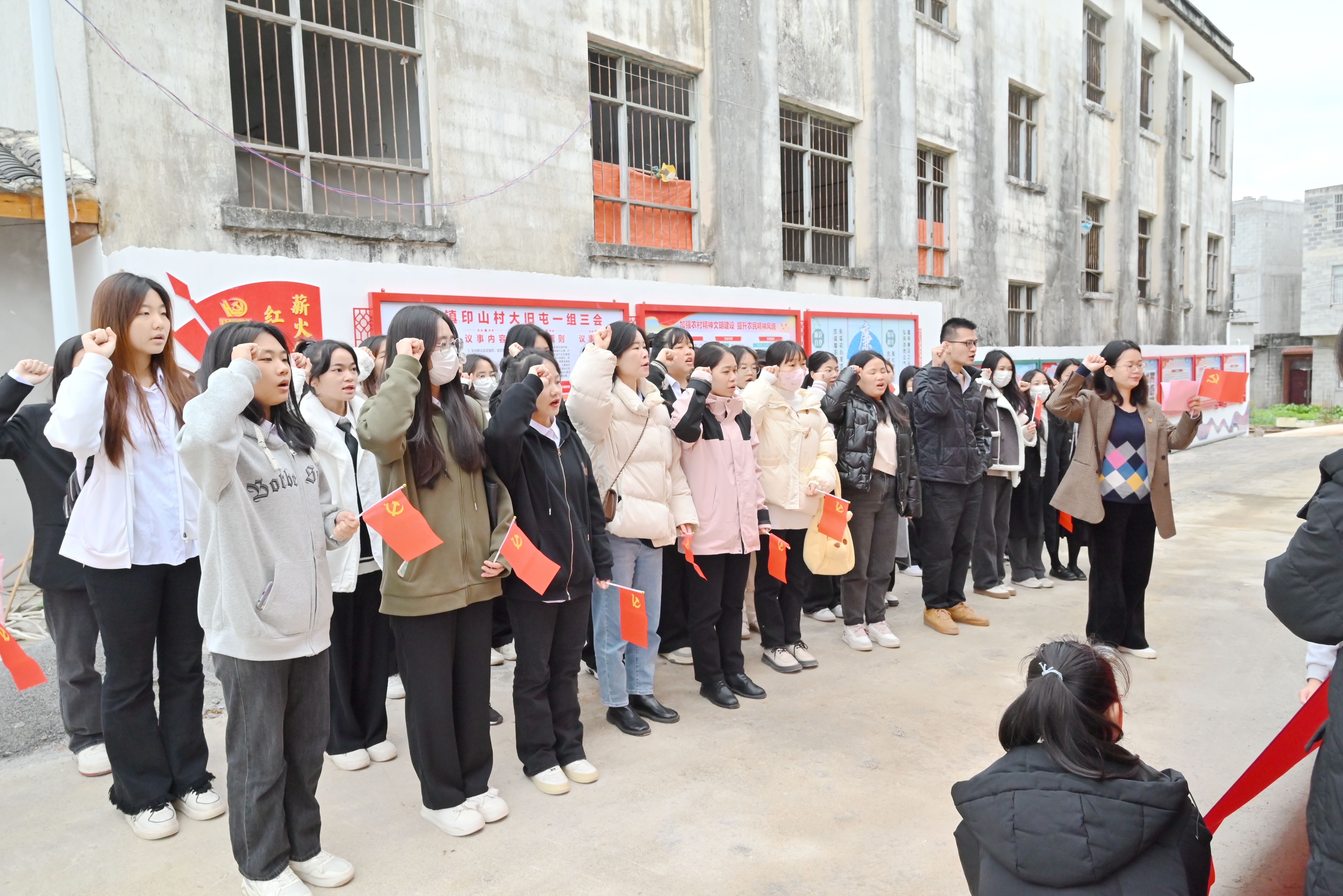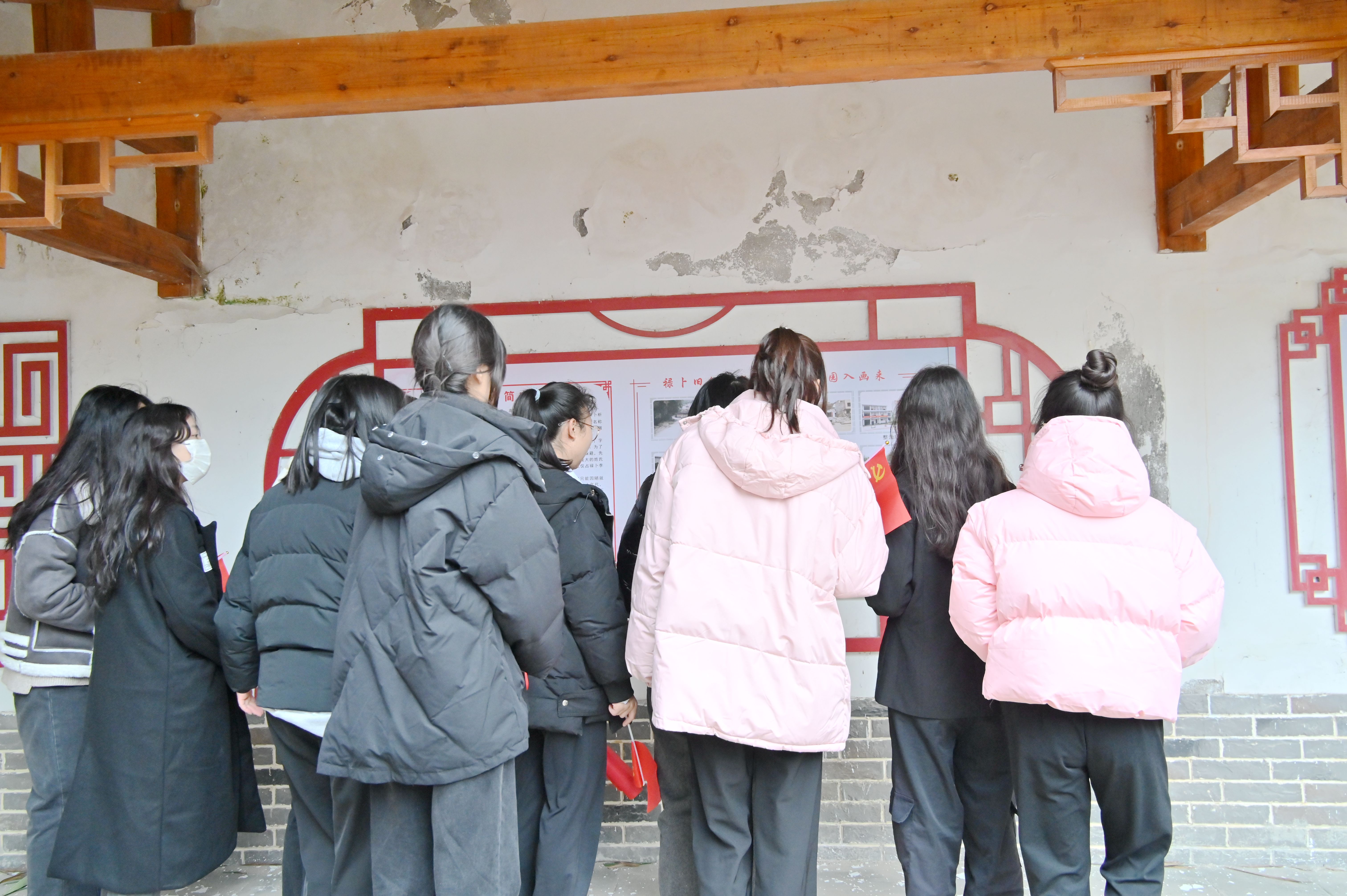 活動(dòng)第一站,參觀四塘鎮(zhèn)地下交通站舊址。在解說員指引和解說下,師生黨員們?nèi)鎸W(xué)習(xí)了四塘鎮(zhèn)地下交通站的歷史,全面了解了革命先輩在大舊屯地下交通站領(lǐng)導(dǎo)地下革命工作的英雄故事,真切感受到革命先輩在艱難環(huán)境下不忘初心、艱苦奮斗的革命精神。在學(xué)院黨支部書記、院長(zhǎng)梁鳳琴的帶領(lǐng)下,全體黨員重溫入黨誓詞。