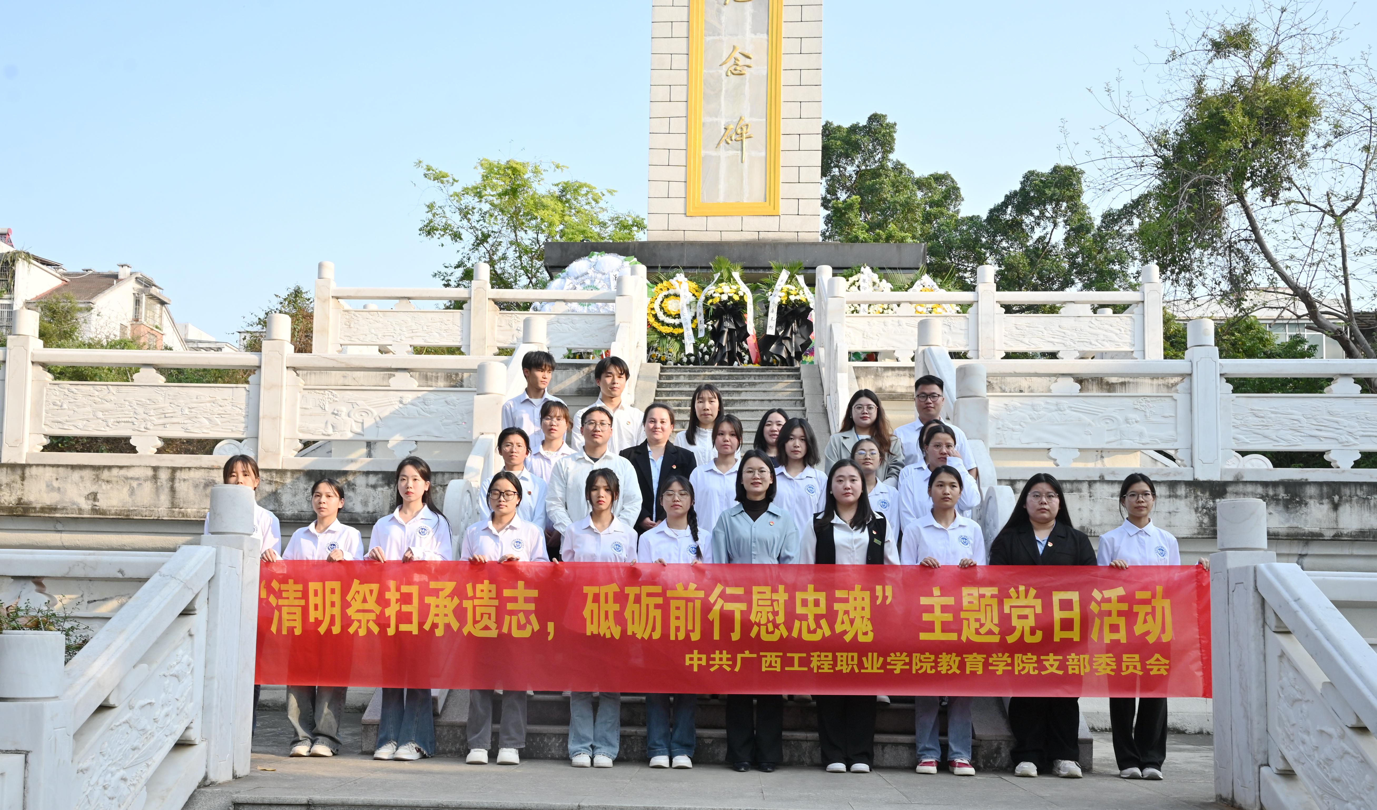 為緬懷革命先烈,傳承紅色基因,2025年4月2日下午,教育學院黨支部組織全體黨員前往烈士陵園,開展 “清明祭掃承遺志,砥礪前行慰忠魂” 主題黨日活動。?