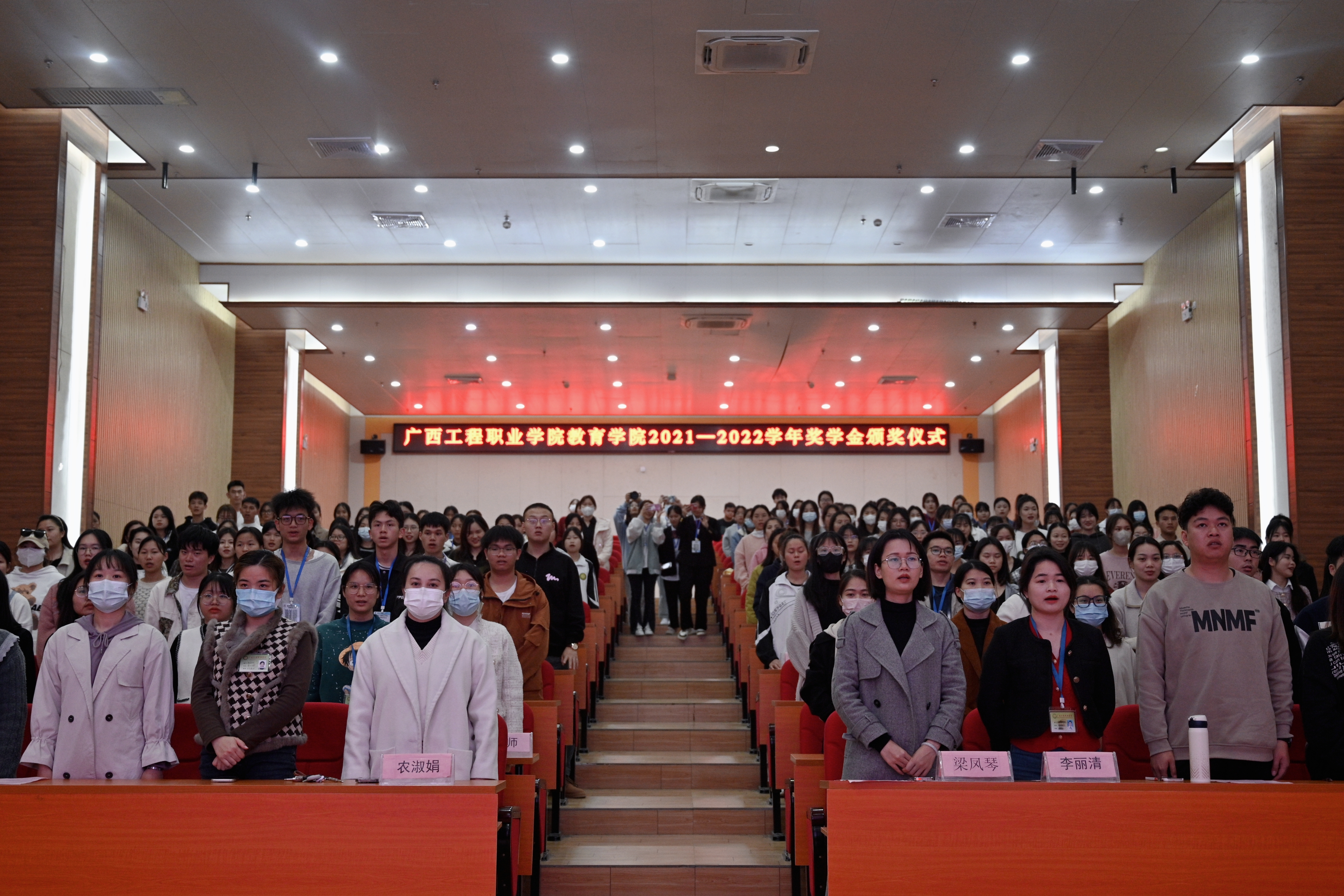 歲月荏苒,匆匆而逝。在校園那美麗的花朵即將綻放的日子,我們又相聚在一起。2023年3月1日晚,廣西工程職業(yè)學(xué)院教育學(xué)院在圖文信息一樓學(xué)術(shù)報告廳舉行了“2021-2022學(xué)年度獎學(xué)金頒獎儀式”。