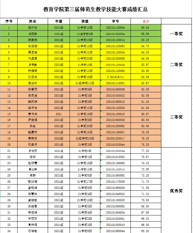 廣西工程職業(yè)學(xué)院2021級、2022級學(xué)前教育專業(yè)師范生教學(xué)技能大賽獲獎名單