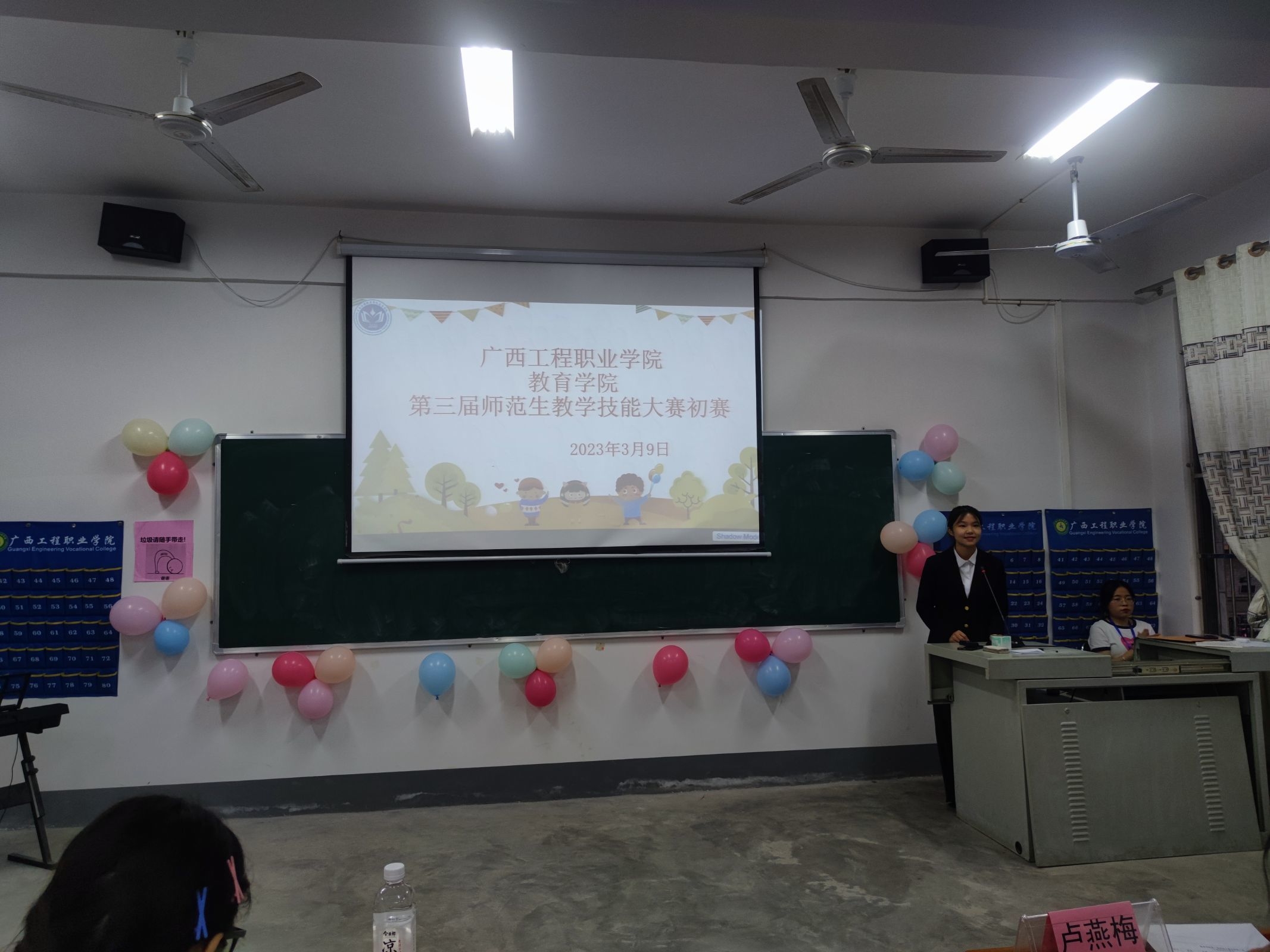 經(jīng)過班級選拔產(chǎn)生40名參賽選手進(jìn)入師范生教學(xué)技能大賽決賽,本次大賽的評委老師有:盧燕梅、葉健芳、辛麗萍、盧麗芳、馬熙、韋國慶、梁春葉、黃集桂、謝麗靜等。另外,此次大賽還有教育學(xué)院學(xué)前專業(yè)學(xué)生到比賽現(xiàn)場進(jìn)行觀摩學(xué)習(xí)。