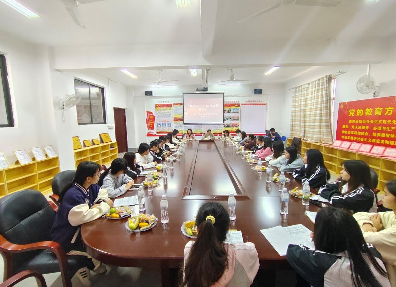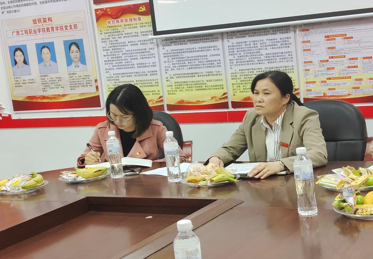 本次座談會參會成員有:學(xué)校校長助理粱善雅、梁鳳琴院長、黨支部副書記盧燕梅、組織委員葉健芳等6名教師黨員及20名入黨積極分子。會議由副書記盧燕梅同志主持。