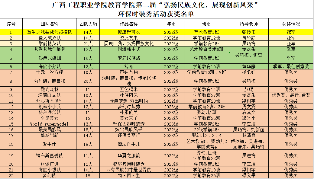 2024年4月2日晚,廣西工程職業(yè)學(xué)院教育學(xué)院在體育館舉行第二屆“弘揚民族文化,展現(xiàn)創(chuàng)新風(fēng)采”環(huán)保時裝秀。學(xué)校副董事長林艷,紀委書記、副校長彭高彬,校長助理梁善雅,教育學(xué)院黨支部書記、院長梁鳳琴等領(lǐng)導(dǎo)干部出席活動現(xiàn)場,教育學(xué)院全體教師及各學(xué)院學(xué)生代表到現(xiàn)場觀看環(huán)保時裝秀。
