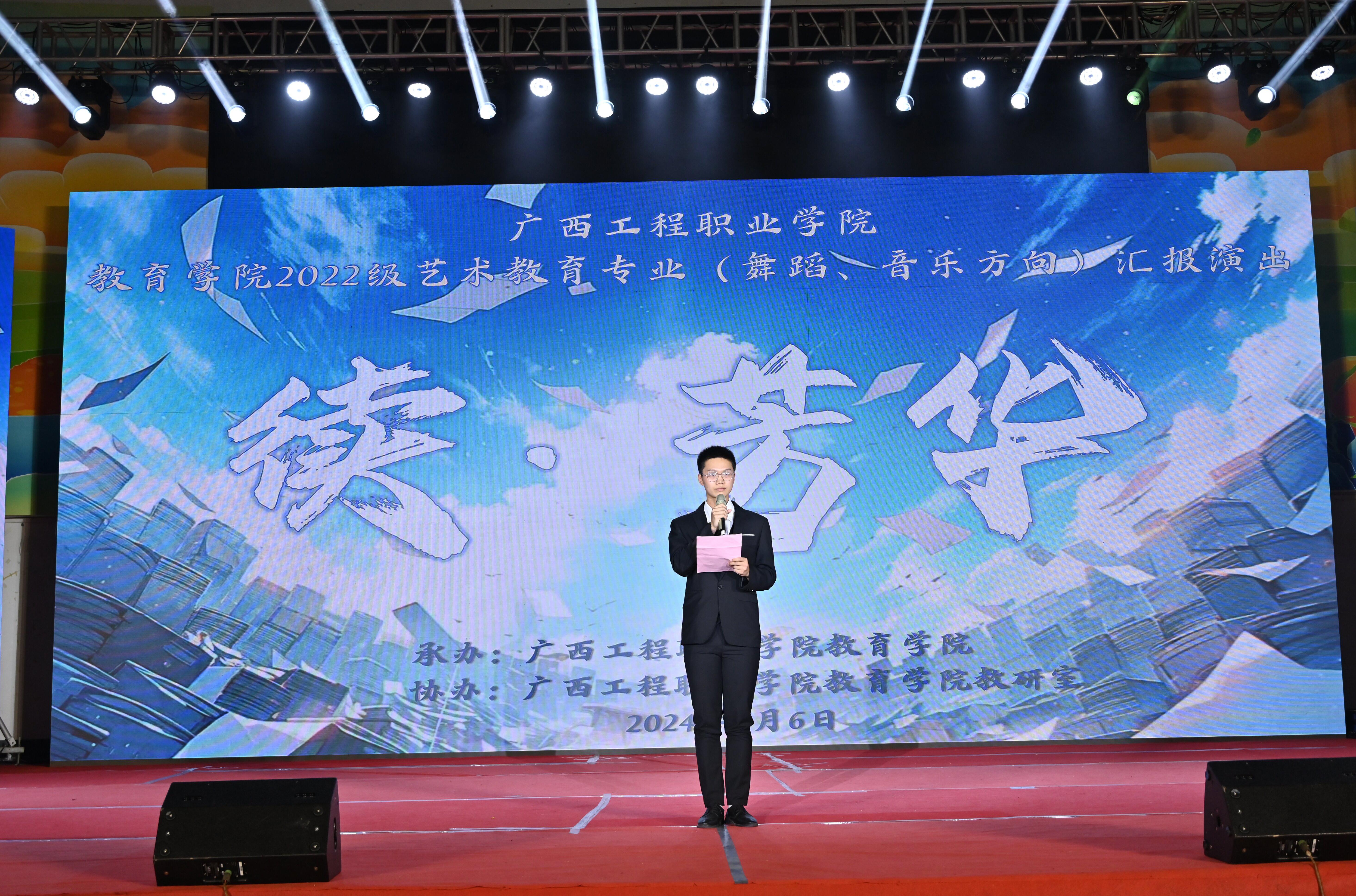 隨著校長助理梁善雅宣布教育學(xué)院2022級藝術(shù)教育專業(yè)(舞蹈、音樂方向)“續(xù)·芳華”匯報演出正式開始,精彩的匯報演出拉開了帷幕。本次匯報演出主要以舞蹈、歌唱、舞臺劇、情景劇等表演形式呈現(xiàn),多角度展示了藝術(shù)專業(yè)同學(xué)們的學(xué)習(xí)成果,展現(xiàn)廣大學(xué)子積極向上的精神風(fēng)貌。