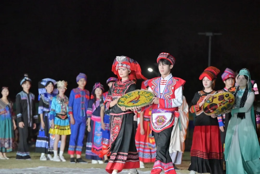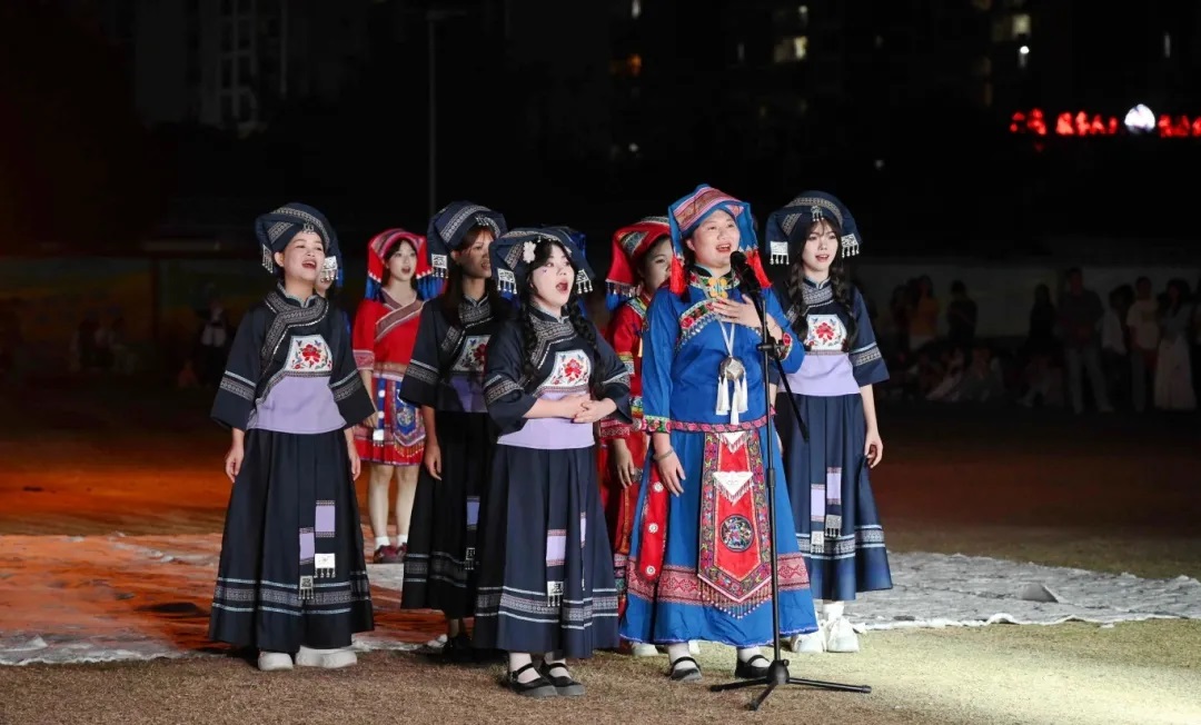 本次篝火晚會精心編排多個精彩節(jié)目,涵蓋山歌串燒、民族舞蹈、非遺表演等多種形式。從 “山歌繞梁·余韻未歇” 的悠揚歌聲,到 “三月春風拂人間·民族文化永傳承” 的多彩演繹,再到 “火焰不息·狂歡不止” 的熱烈氛圍,將全方位呈現(xiàn)民族文化魅力,為師生們帶來一場令人驚艷的視聽盛宴。