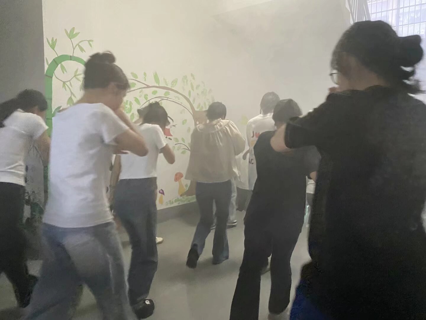 當日,急促的警報聲驟然響起,拉開演練序幕。各上課班級教師迅速組織學生,低姿、用手或者濕毛巾捂住口鼻,按照預定疏散路線有序地向安全區(qū)域撤離。短短幾分鐘,全體師生安全集結,整個過程緊張有序,展現(xiàn)出良好的應急反應能力。?