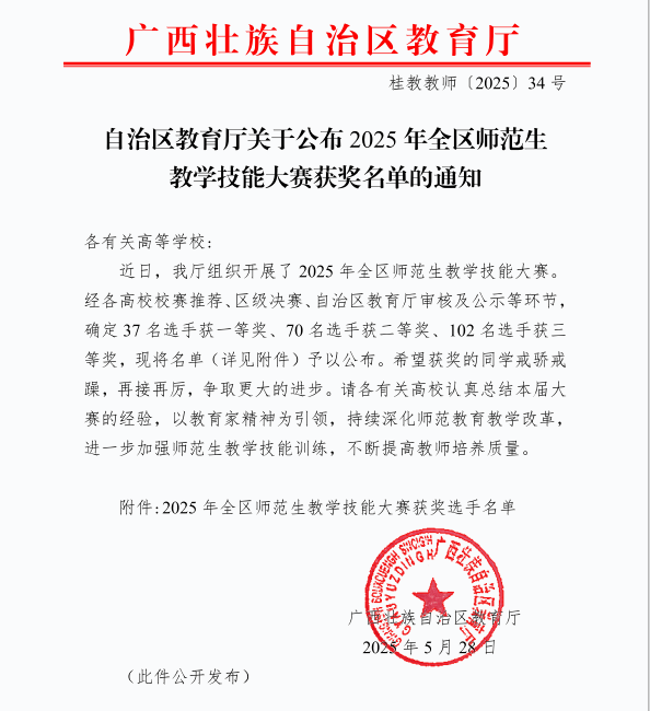一直以來,我院高度重視師范生教學(xué)技能的培養(yǎng),通過構(gòu)建 “以賽促訓(xùn)、以賽促改”的實(shí)踐育人體系,系統(tǒng)組織學(xué)生參與各類教學(xué)技能賽事。此次大賽獲獎,不僅是對參賽學(xué)生個人能力的肯定,更是對我院教師教學(xué)指導(dǎo)水平和人才培養(yǎng)質(zhì)量的高度認(rèn)可。未來,我院將以此次大賽為契機(jī),持續(xù)深化教學(xué)改革,強(qiáng)化實(shí)踐教學(xué)環(huán)節(jié),為教育領(lǐng)域輸送更多優(yōu)秀的師資人才。