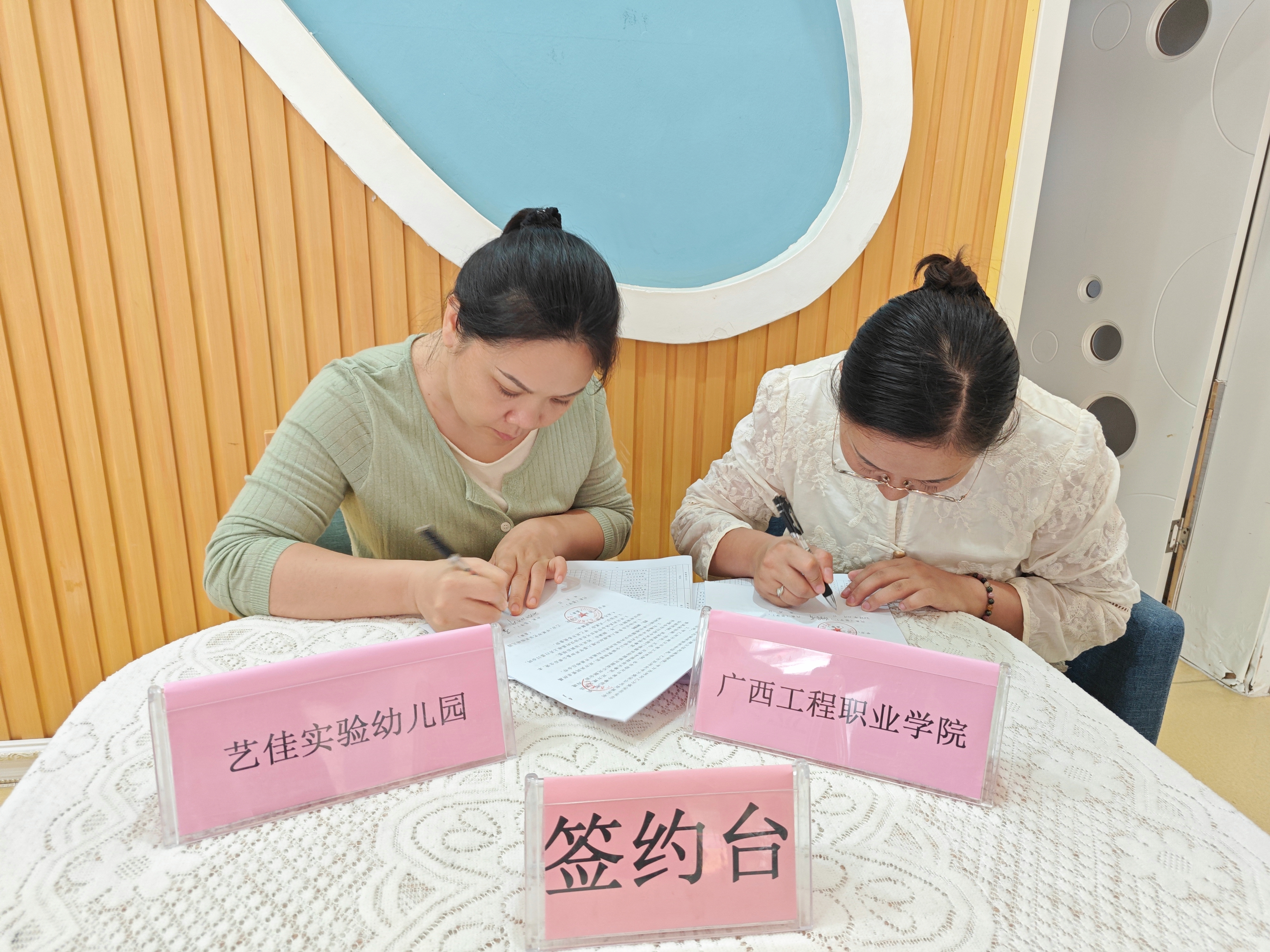 廣西工程職業(yè)學(xué)院作為當(dāng)?shù)嘏囵B(yǎng)學(xué)前教育專業(yè)人才的重要基地,多年來始終致力于提升人才培養(yǎng)質(zhì)量,注重與一線幼兒園的實踐合作。而 平果藝佳實驗幼兒園是區(qū)域內(nèi)口碑優(yōu)良的學(xué)前教育機(jī)構(gòu),在幼兒教學(xué)、管理運營等方面積累了豐富經(jīng)驗。此次簽約前,雙方經(jīng)過多次溝通協(xié)商,圍繞人才培養(yǎng)、人才評價、實習(xí)實踐、課程研發(fā)、教師專業(yè)實踐等方面達(dá)成共識,旨在通過深度合作,實現(xiàn)院校與幼兒園的優(yōu)勢互補(bǔ)。?