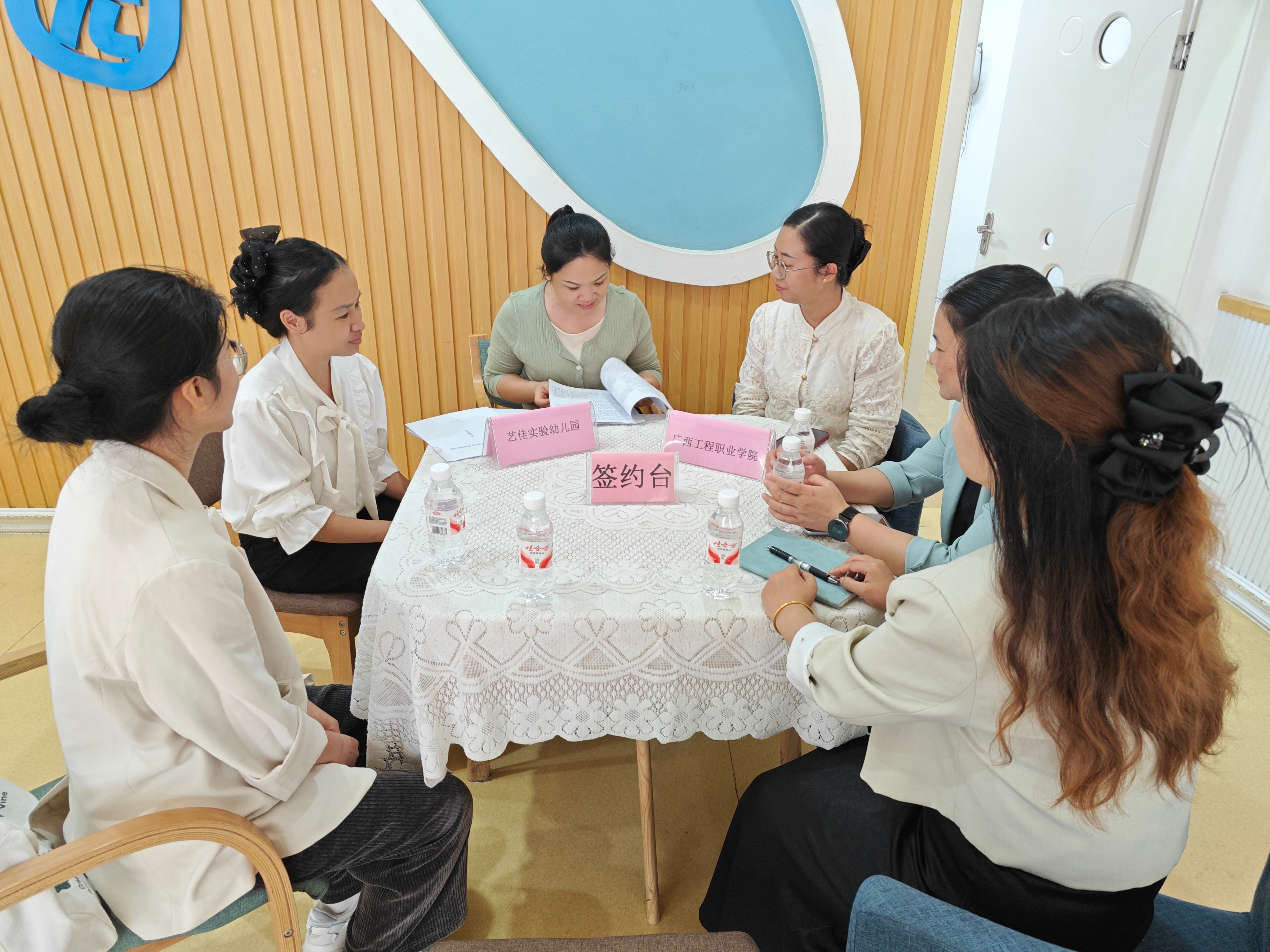 隨后,雙方代表共同簽署了校企合作協(xié)議書。根據(jù)協(xié)議,未來雙方將在人才培養(yǎng)、人才評價、實習(xí)實踐、課程研發(fā)、教師專業(yè)實踐等方面開展長期穩(wěn)定的合作。此次簽約不僅為我院學(xué)前教育專業(yè)的人才培養(yǎng)注入新動力,也為平果藝佳實驗幼兒園的發(fā)展提供了有力支持,對推動區(qū)域?qū)W前教育事業(yè)高質(zhì)量發(fā)展具有重要意義。
