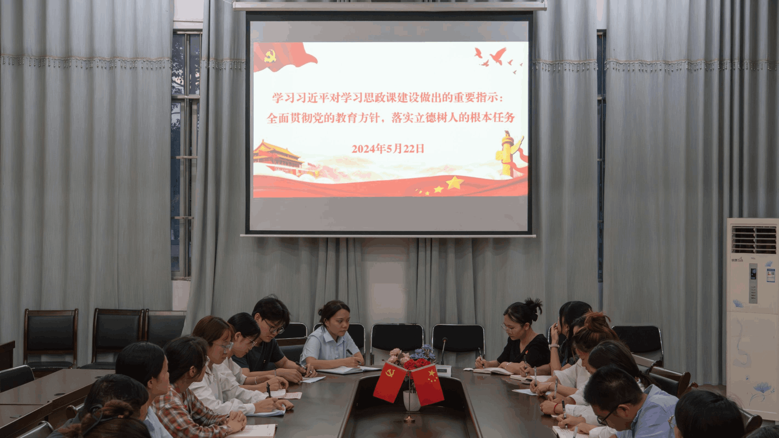會上,首先進行政治理論學習,由支部副書記潘翠萍帶領全體黨員學習習近平對學習課程思政做出的重要指示:全面貫徹黨的教育方針,落實立德樹人的根本任務。指示中強調各級各類學校要自覺擔起主體責任,不斷開創(chuàng)新時代思政教育新局面,努力培養(yǎng)更多讓黨放心、愛國奉獻、擔當民族復興重任的時代新人。