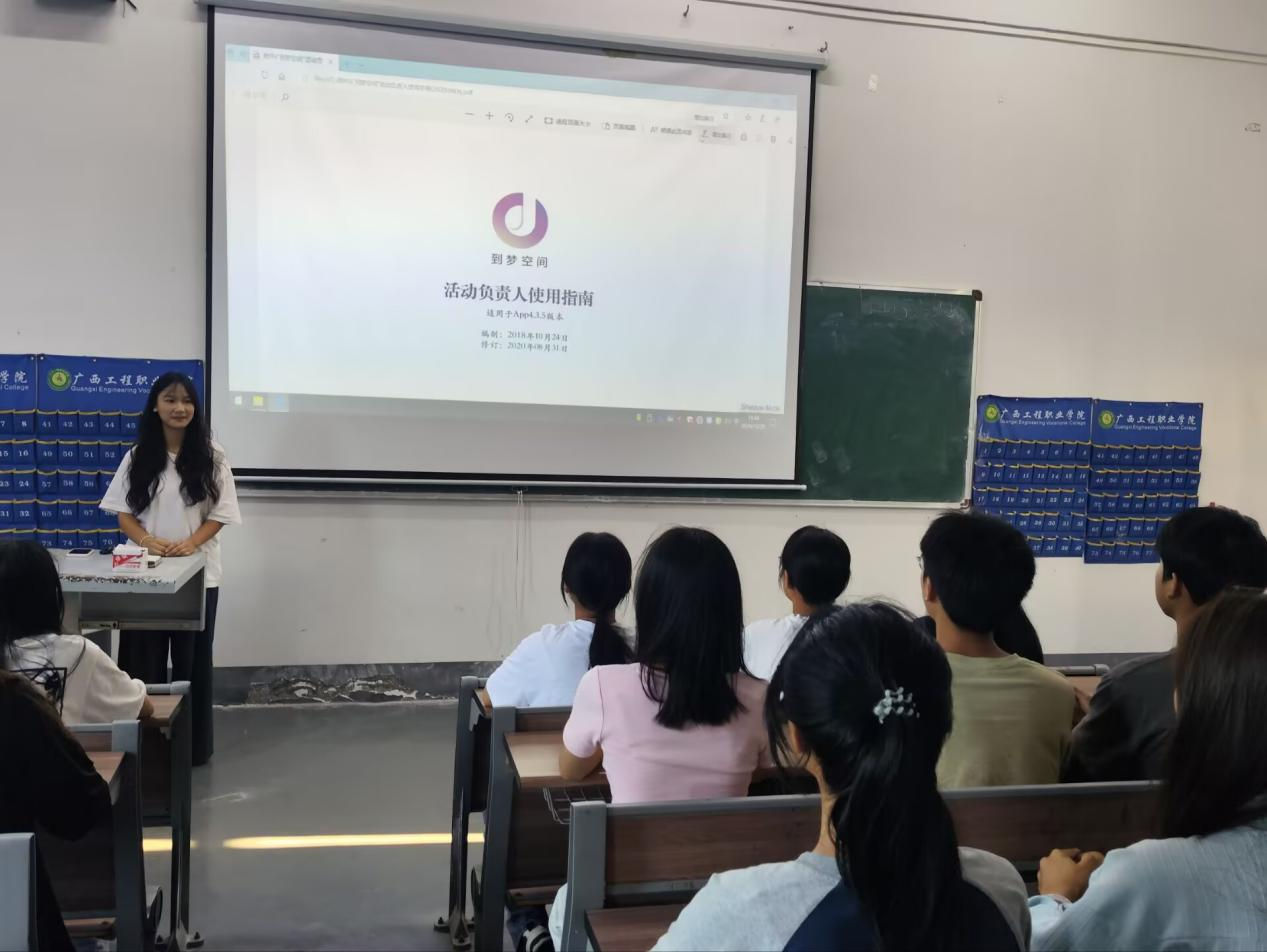 會(huì)議第二項(xiàng),銀娜娜同學(xué)對(duì)第二課堂成績(jī)單制度及如何使用“到夢(mèng)空間”進(jìn)行詳細(xì)講解。她帶領(lǐng)全體新生們學(xué)習(xí)第二課堂活動(dòng)管理平臺(tái)“到夢(mèng)空間”的使用方法,對(duì)思想成長(zhǎng)、實(shí)踐實(shí)習(xí)、創(chuàng)新創(chuàng)業(yè)、志愿公益、文體活動(dòng)、工作履歷、技能特長(zhǎng)等第二課堂學(xué)分類型進(jìn)行具體介紹。她特別指出,“第二課堂”是幫助學(xué)生實(shí)現(xiàn)成長(zhǎng)與發(fā)展的重要載體,她鼓勵(lì)同學(xué)們積極參加各類第二課堂活動(dòng),鍛煉自己、提升素質(zhì),努力成為德智體美勞全面發(fā)展的高素質(zhì)人才。