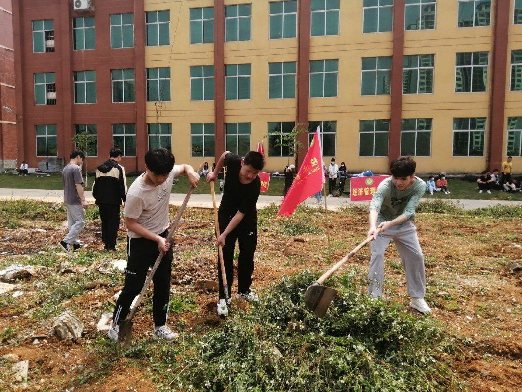 我校校長(zhǎng)助理黃秋霞、后勤管理處劉兆兵處長(zhǎng)、校團(tuán)委陳威老師率先垂范,與學(xué)生們共同參與到美化校園植樹(shù)活動(dòng)中。同學(xué)們熱情高漲,平常連鋤頭都沒(méi)有摸過(guò)的他們,此刻干起活來(lái)卻有模有樣?,F(xiàn)場(chǎng)大家互相合作,氣氛活躍,有的負(fù)責(zé)挖坑、有的幫忙扶樹(shù)苗、有的澆水......熱鬧的場(chǎng)面既溫馨又快樂(lè)。一眨眼的功夫,在師生的辛勤勞動(dòng)下,百十顆樹(shù)苗已扎根土里,生意盎然,象征著新的希望。雖然大家腳底沾滿了泥土,弄臟了褲子,弄濕了鞋子,但眼前這一片新生的春意讓大家滿心歡喜。