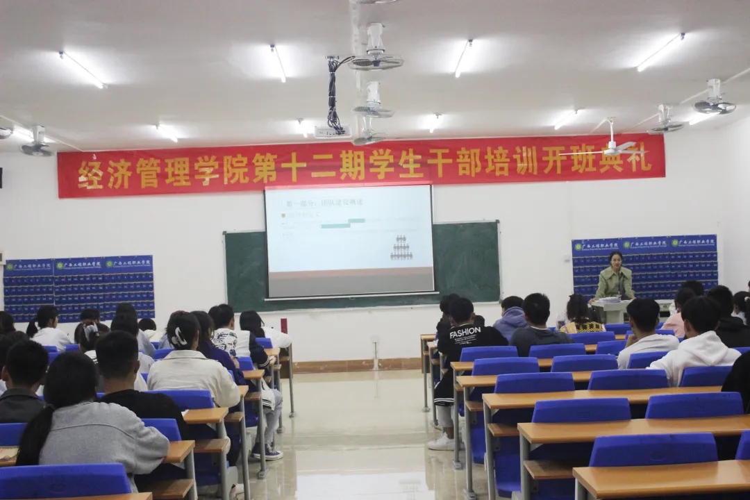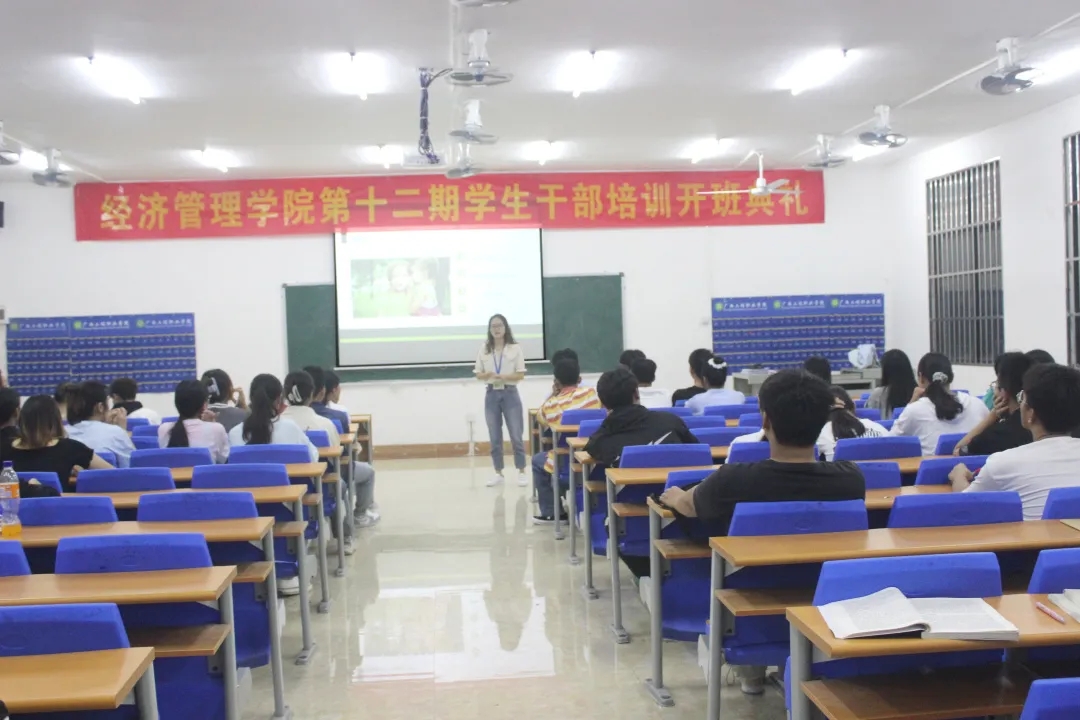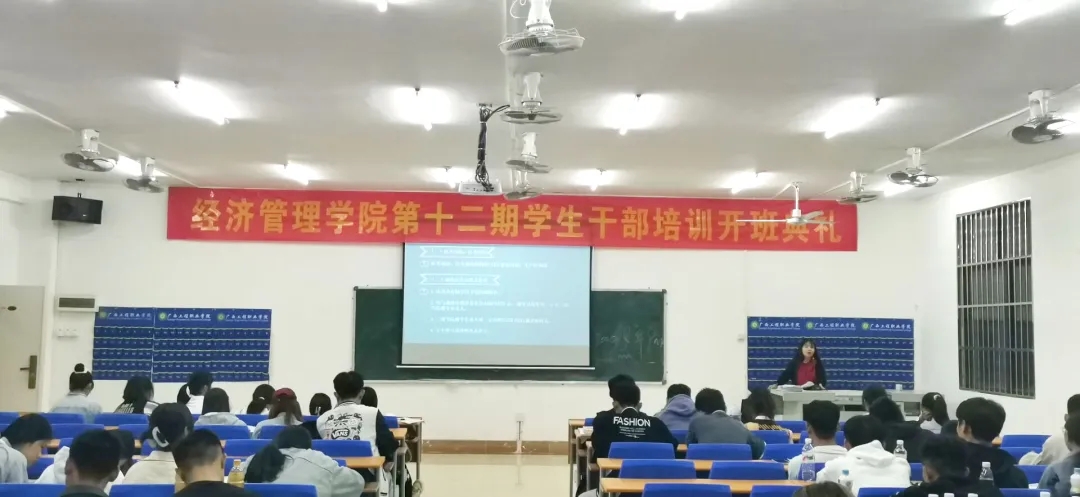 學(xué)校校長助理黃秋霞,經(jīng)濟(jì)管理學(xué)院黨支部書記、副院長覃清香,經(jīng)濟(jì)管理學(xué)院辦公室主任雷紅、分團(tuán)委書記李東英及輔導(dǎo)員、專職老師代表出席開班儀式,經(jīng)濟(jì)管理學(xué)院2021級全體學(xué)生干部參加培訓(xùn)。