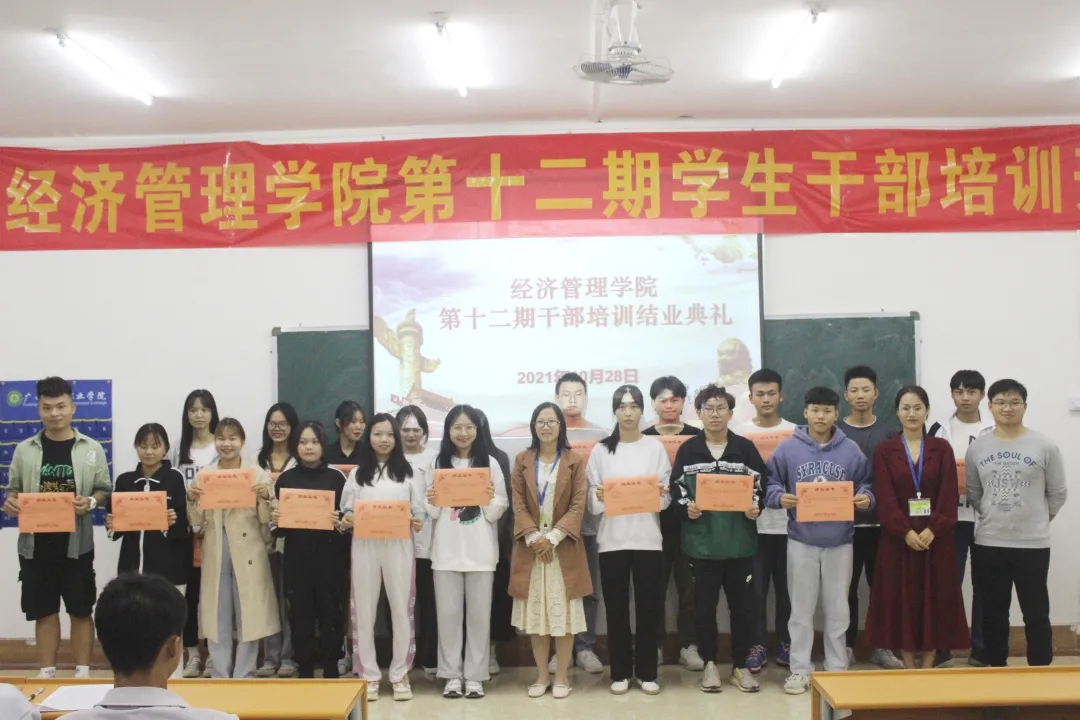 2021年10月28日,第十二期學(xué)生干部培訓(xùn)班學(xué)習(xí)圓滿結(jié)束,由學(xué)院領(lǐng)導(dǎo)及老師頒發(fā)結(jié)業(yè)證書。