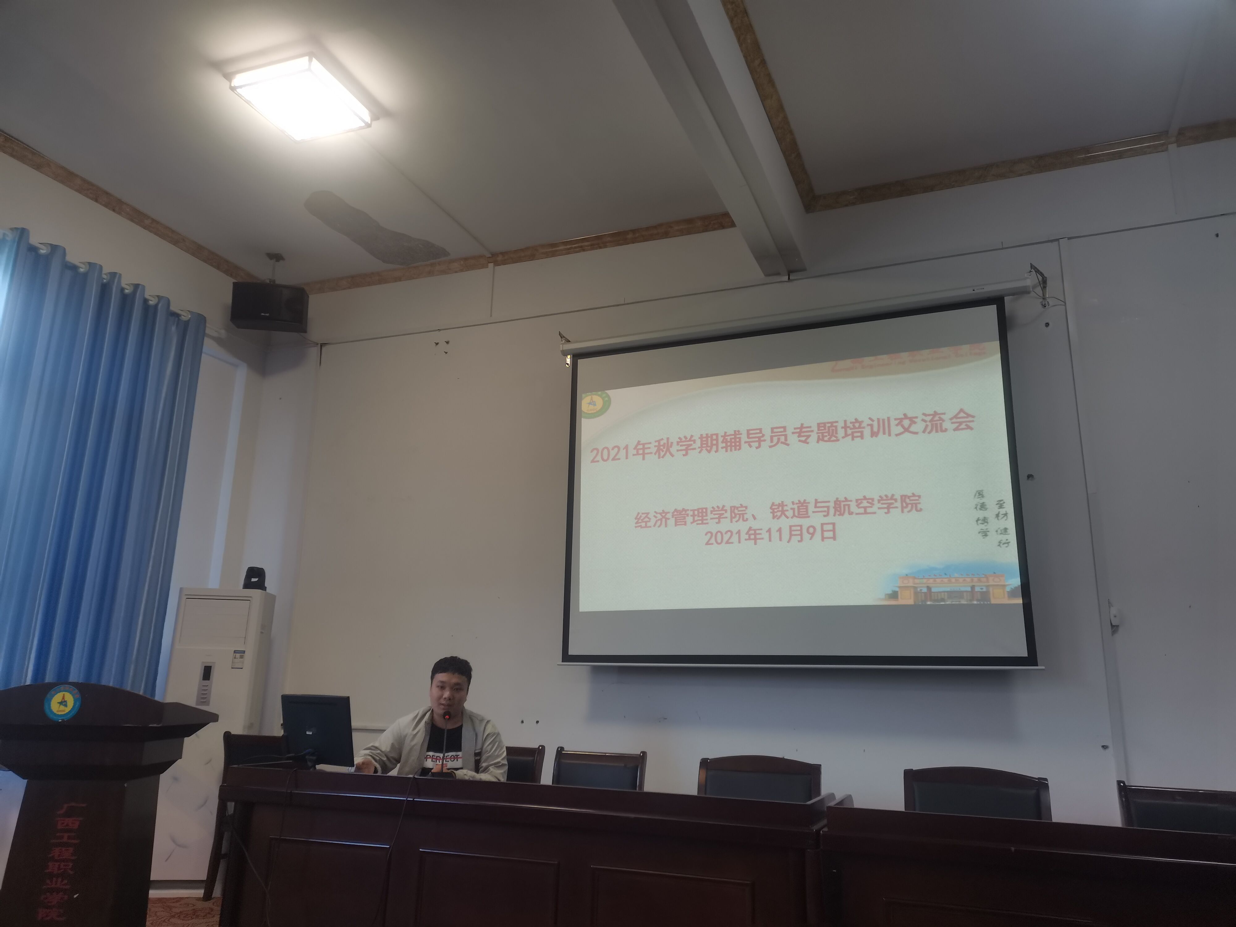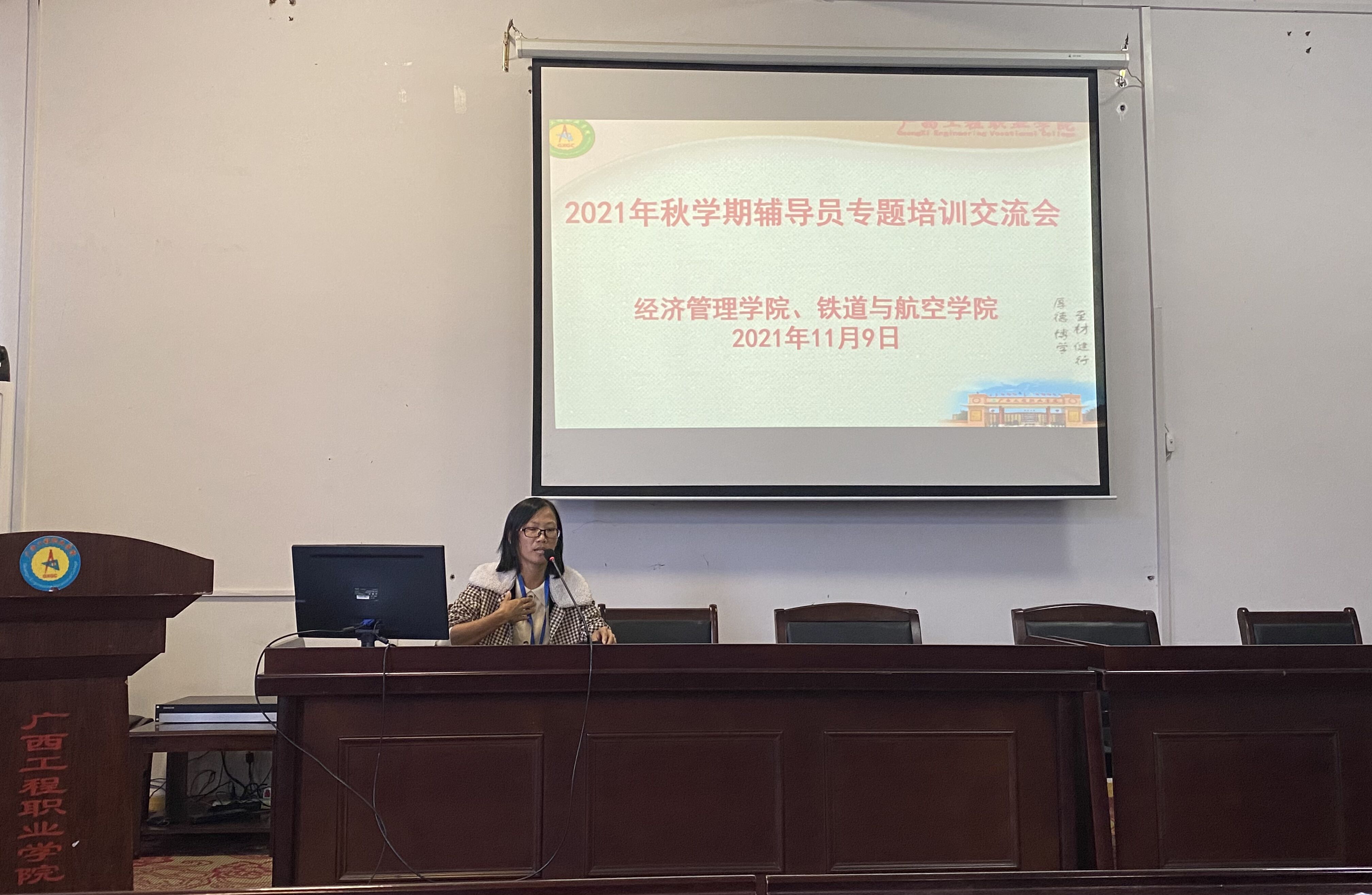 為提升我校思想政治工作質(zhì)量和輔導(dǎo)員隊(duì)伍建設(shè)水平,培養(yǎng)輔導(dǎo)員隊(duì)伍的職業(yè)榮譽(yù)感與歸屬感,增強(qiáng)輔導(dǎo)員的團(tuán)隊(duì)協(xié)作意識(shí),推動(dòng)輔導(dǎo)員隊(duì)伍專業(yè)化、職業(yè)化發(fā)展,11月9日下午,經(jīng)濟(jì)管理學(xué)院、鐵道與航空管理學(xué)院在我校圖書(shū)館一樓學(xué)術(shù)報(bào)告廳聯(lián)合召開(kāi)2021年秋學(xué)期輔導(dǎo)員專題培訓(xùn)交流會(huì),學(xué)校黨委委員、副校長(zhǎng)彭高彬參與并指導(dǎo)此次交流會(huì),兩個(gè)二級(jí)學(xué)院的黨支部書(shū)記、分團(tuán)委書(shū)記、全體輔導(dǎo)員參加交流會(huì)。
