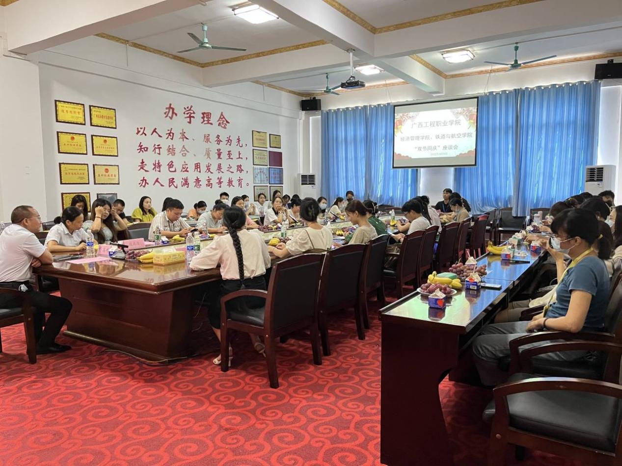 九月,一個丹桂飄香的季節(jié),一個充滿收獲充滿感恩的季節(jié),一個屬于教師的季節(jié)。在第38個教師節(jié)和中國傳統(tǒng)節(jié)日中秋節(jié)。9月9日,經(jīng)濟(jì)管理學(xué)院和鐵道與航空學(xué)院在圖書館一樓會議室聯(lián)合舉行中秋節(jié)、教師節(jié)“雙節(jié)同慶”座談會。參加此次座談會的有:學(xué)校紀(jì)委書記、副校長彭高彬,經(jīng)濟(jì)管理學(xué)院院長龐英連,鐵道與航空學(xué)院院長覃鳳姣,以及兩個學(xué)院的全體教師。