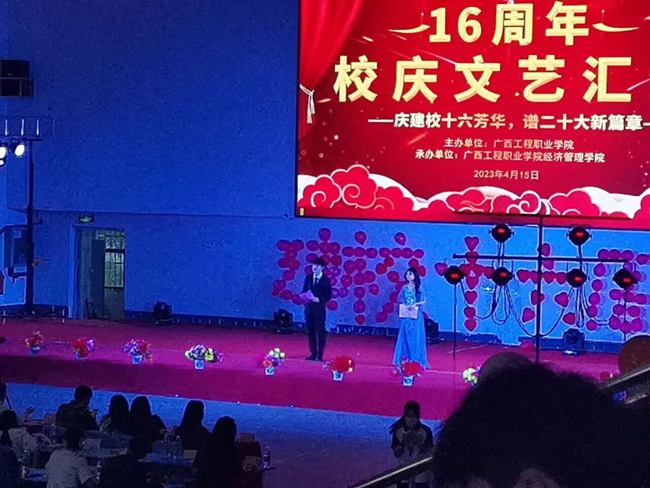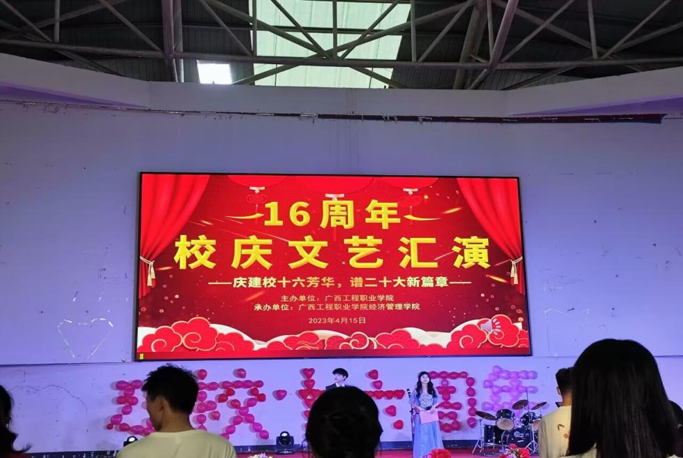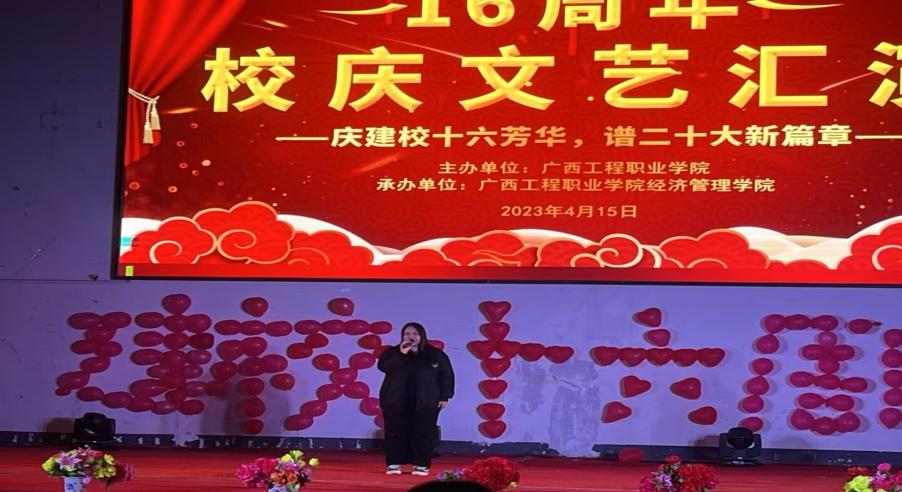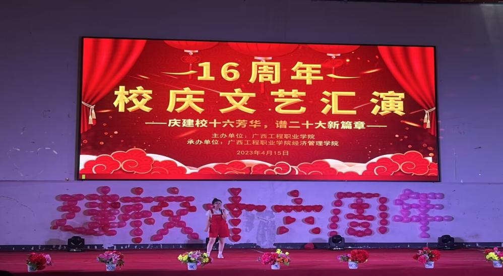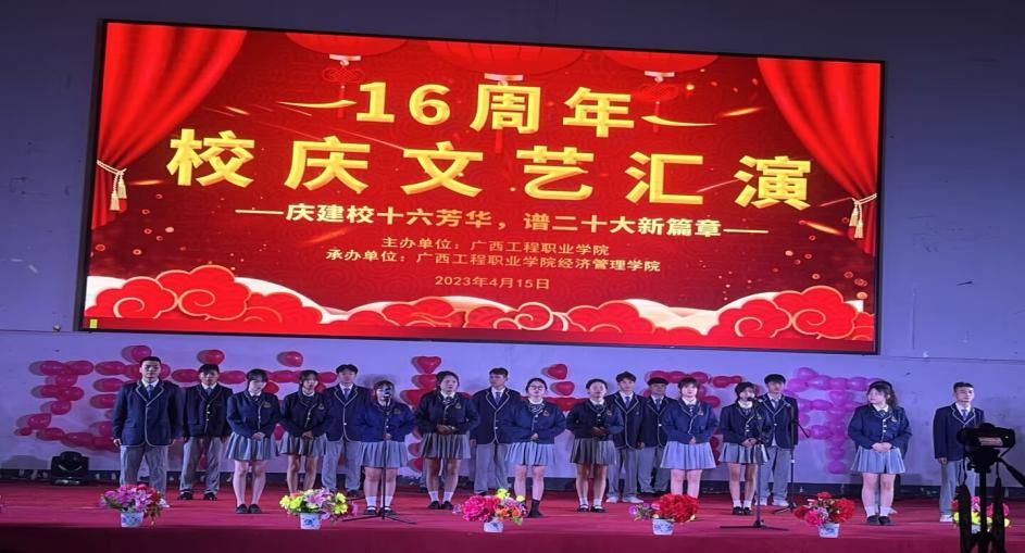 奏唱國(guó)歌完畢,由經(jīng)濟(jì)管理學(xué)院黨支部書記 院長(zhǎng)-致辭,慶祝建校十六周年。最后由經(jīng)濟(jì)管理學(xué)院黨支部副書記-宣布晚會(huì)開始。