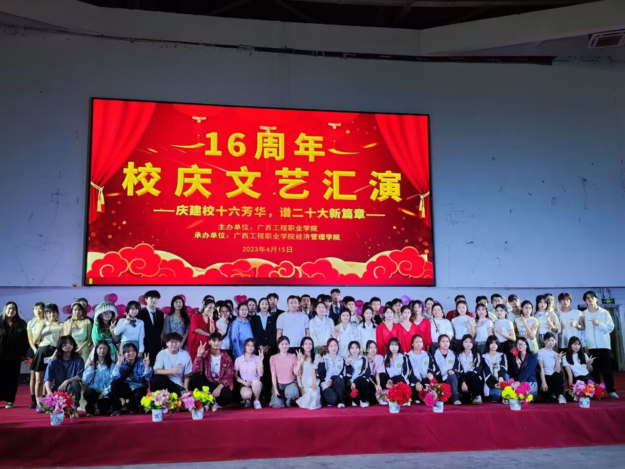 16周年校慶文藝表演晚會(huì)結(jié)束,領(lǐng)導(dǎo)、老師和表演隊(duì)伍合影留念。時(shí)光總是那么短暫,但快樂可以留存在記憶里。我們將攜手共進(jìn),開啟更新的一天,愿明天的我們會(huì)更好,祝學(xué)校的未來更輝煌!
