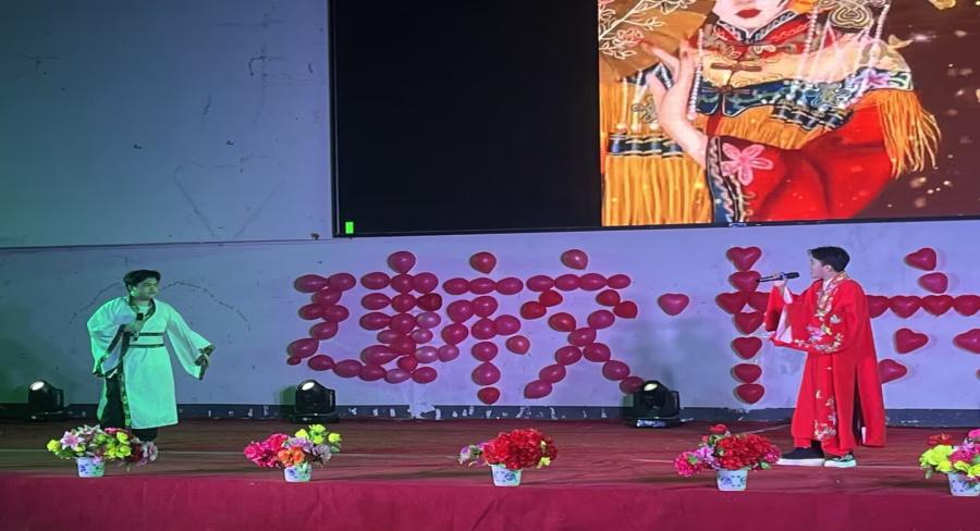 節(jié)目12:21級(jí)財(cái)務(wù)管理1班的《牽紅線》,負(fù)責(zé)人-陳國(guó)達(dá)。簡(jiǎn)單的兩人合唱,卻能唱出有難度的戲劇腔喉,可謂一鳴驚人。