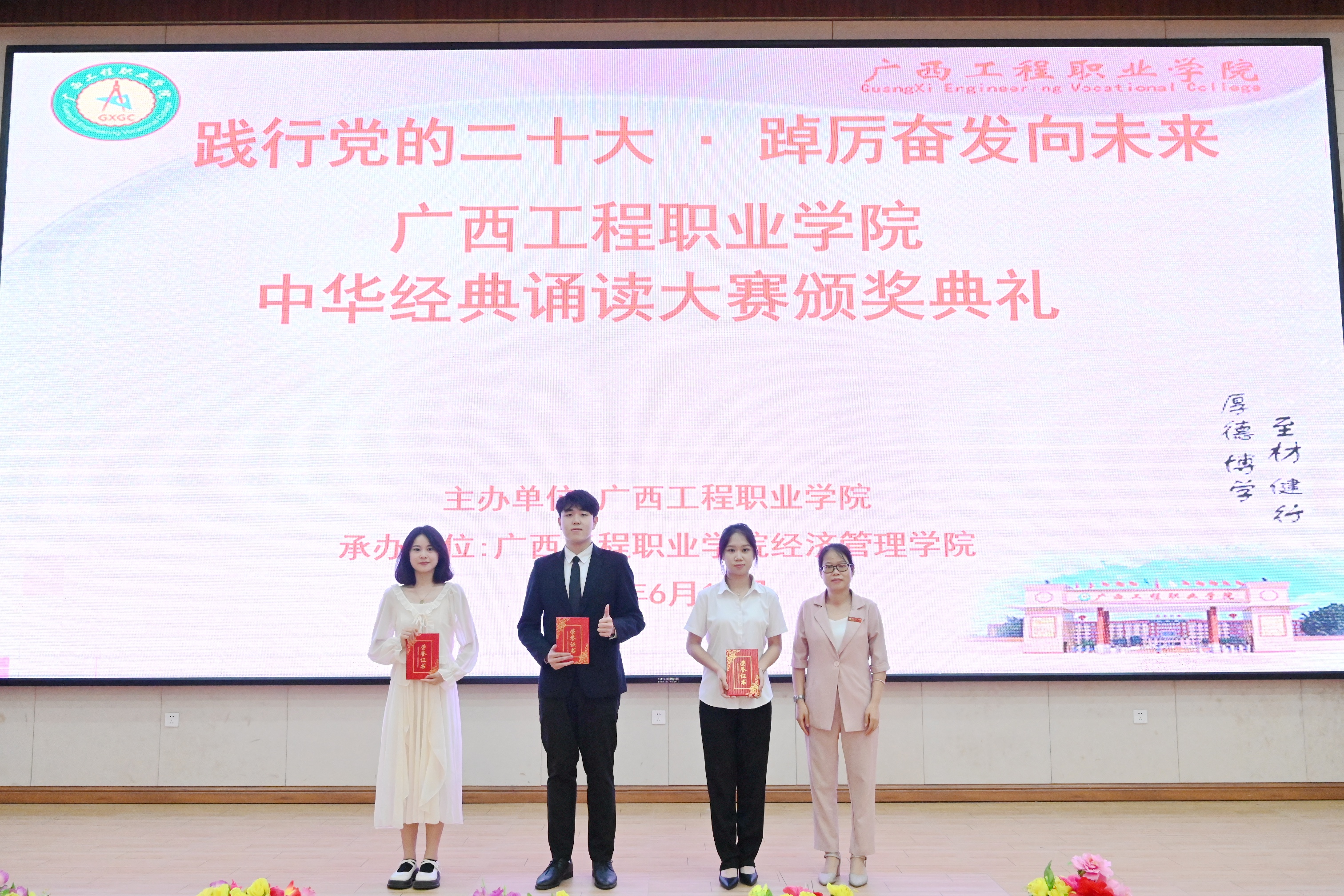 為深入貫徹黨的二十大精神,加大國家通用語言文字推廣力度,弘揚中華優(yōu)秀傳統(tǒng)文化,推進文化自信自強。以中華經(jīng)典、紅色文化鑄魂育人,奏響愛黨、愛國、愛社會主義的主旋律,鑄牢中華民族共同體意識,凝聚奮進新征程、建功新時代的磅礴力量。2023年6月15日晚,廣西工程職業(yè)學(xué)院在圖文信息大樓一樓學(xué)術(shù)報告大廳舉行“踐行黨的二十大·踔厲奮發(fā)向未來”校園中華經(jīng)典誦讀大賽比賽,由中共廣西工程職業(yè)學(xué)院委員會主辦,中共廣西工程職業(yè)學(xué)院經(jīng)濟管理學(xué)院支部委員會承辦。