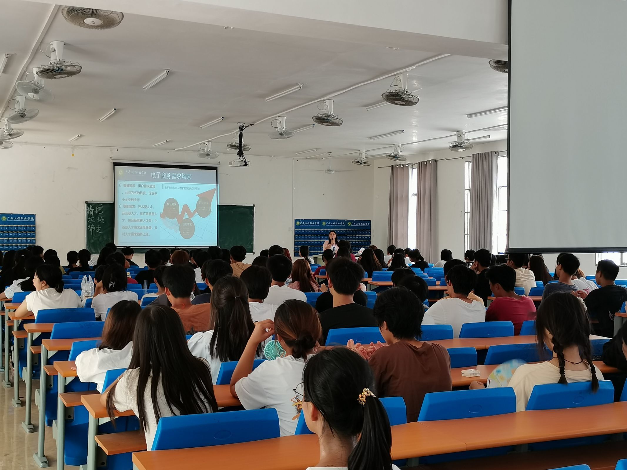 為幫助2023級新生盡快全面了解所學專業(yè),使他們更好、更快地適應大學學習生活,合理規(guī)劃大學學習生涯,9月25日,經(jīng)濟管理學院2023級大數(shù)據(jù)與會計、大數(shù)據(jù)與財務管理、電子商務、酒店管理與書數(shù)字化運營、國際經(jīng)濟與貿(mào)易、市場營銷、智慧健康養(yǎng)老服務與管理專業(yè)、現(xiàn)代物業(yè)管理、現(xiàn)代家政服務與管理九個專業(yè)分別在二教同步進行了23級新生專業(yè)介紹活動。