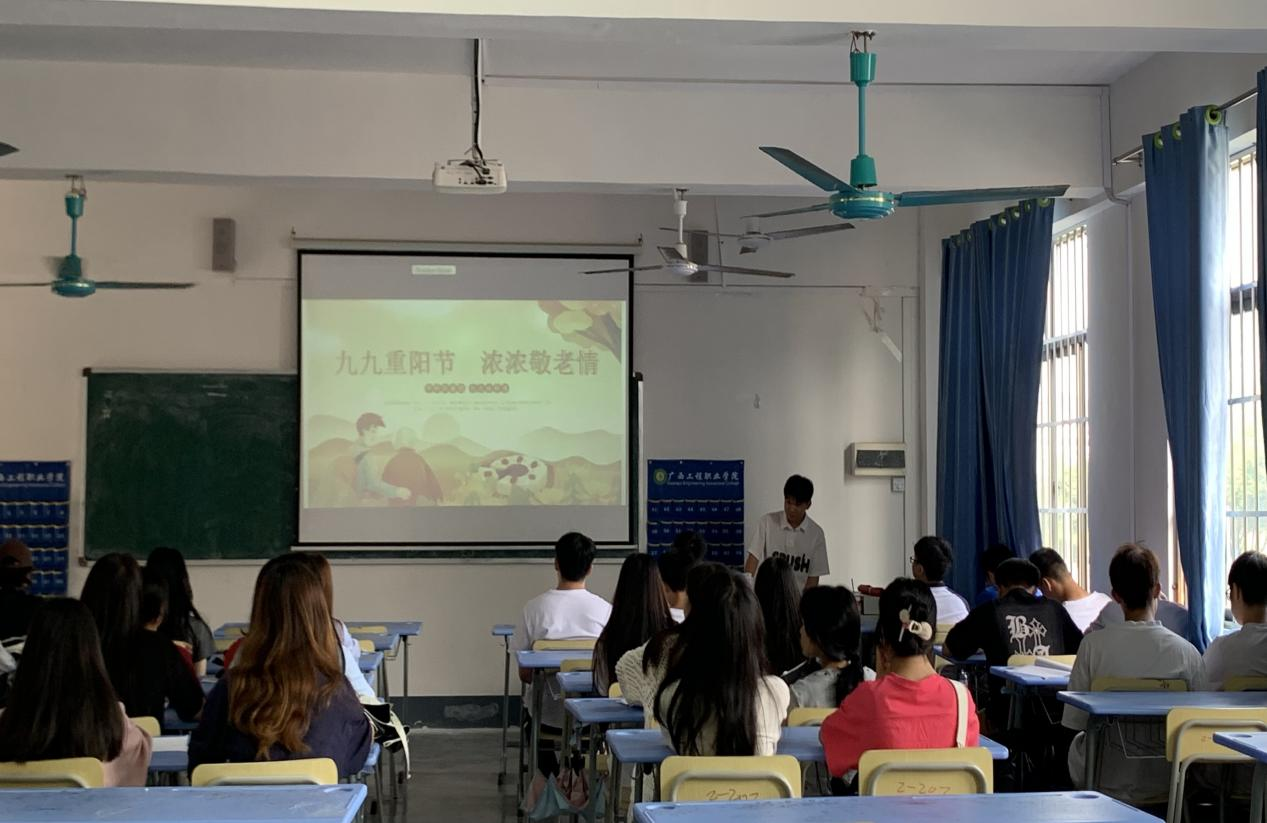 班會課上,老師通過ppt和視頻的形式給學(xué)生們講述了重陽節(jié)的由來、傳統(tǒng)習(xí)俗和意義,播放了有關(guān)重陽節(jié)傳說的短視頻,讓學(xué)生更加了解重陽節(jié)歷史。不僅如此,班級的活動形式也多種多樣。各個班級通過優(yōu)美的詩歌朗誦、感人的故事和生動的事例的演講,不但使同學(xué)們知道了重陽節(jié)的由來,還懂得了尊老愛老是我們中華民族的優(yōu)良傳統(tǒng),從而告誡每位同學(xué)都要尊敬老人。