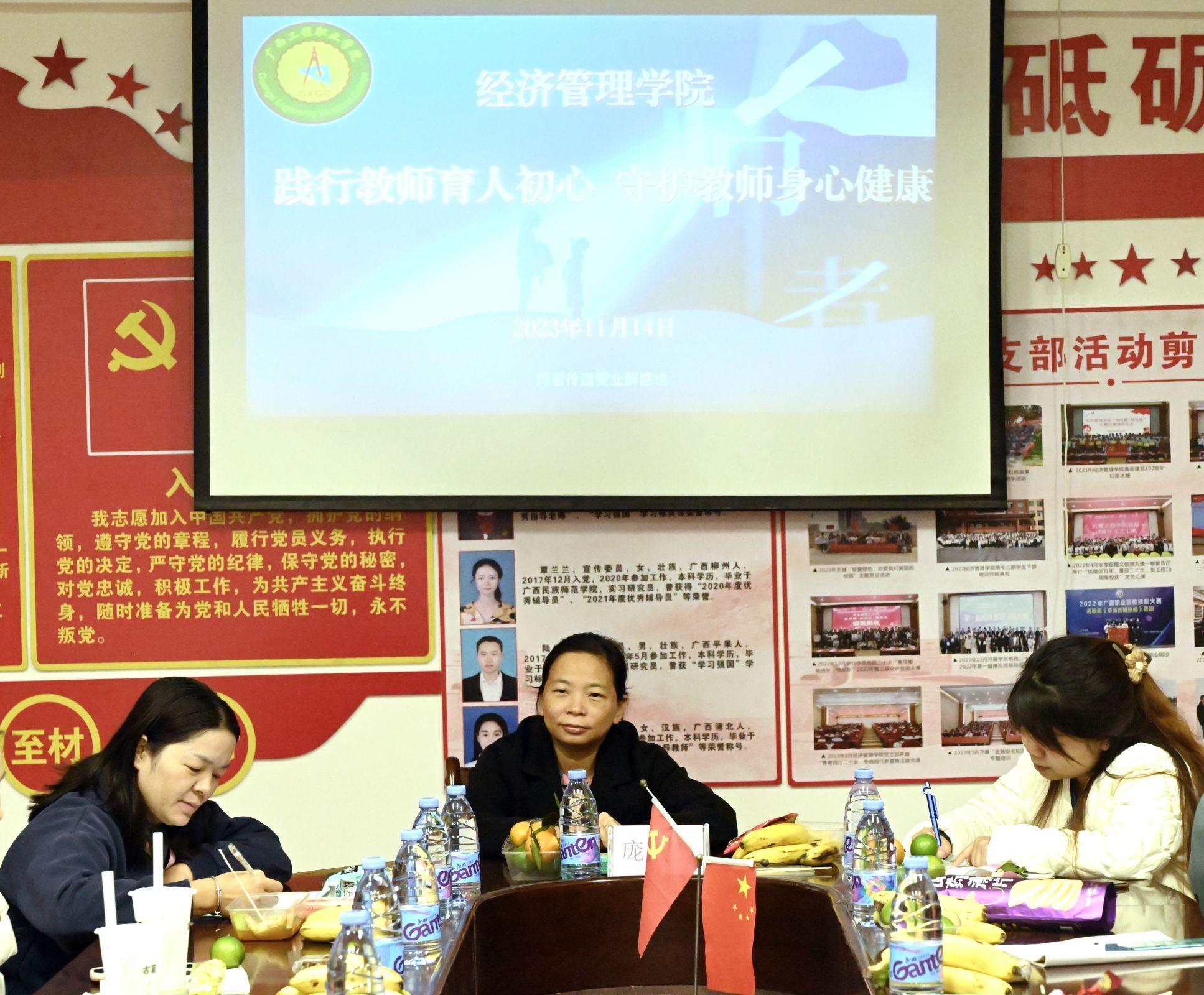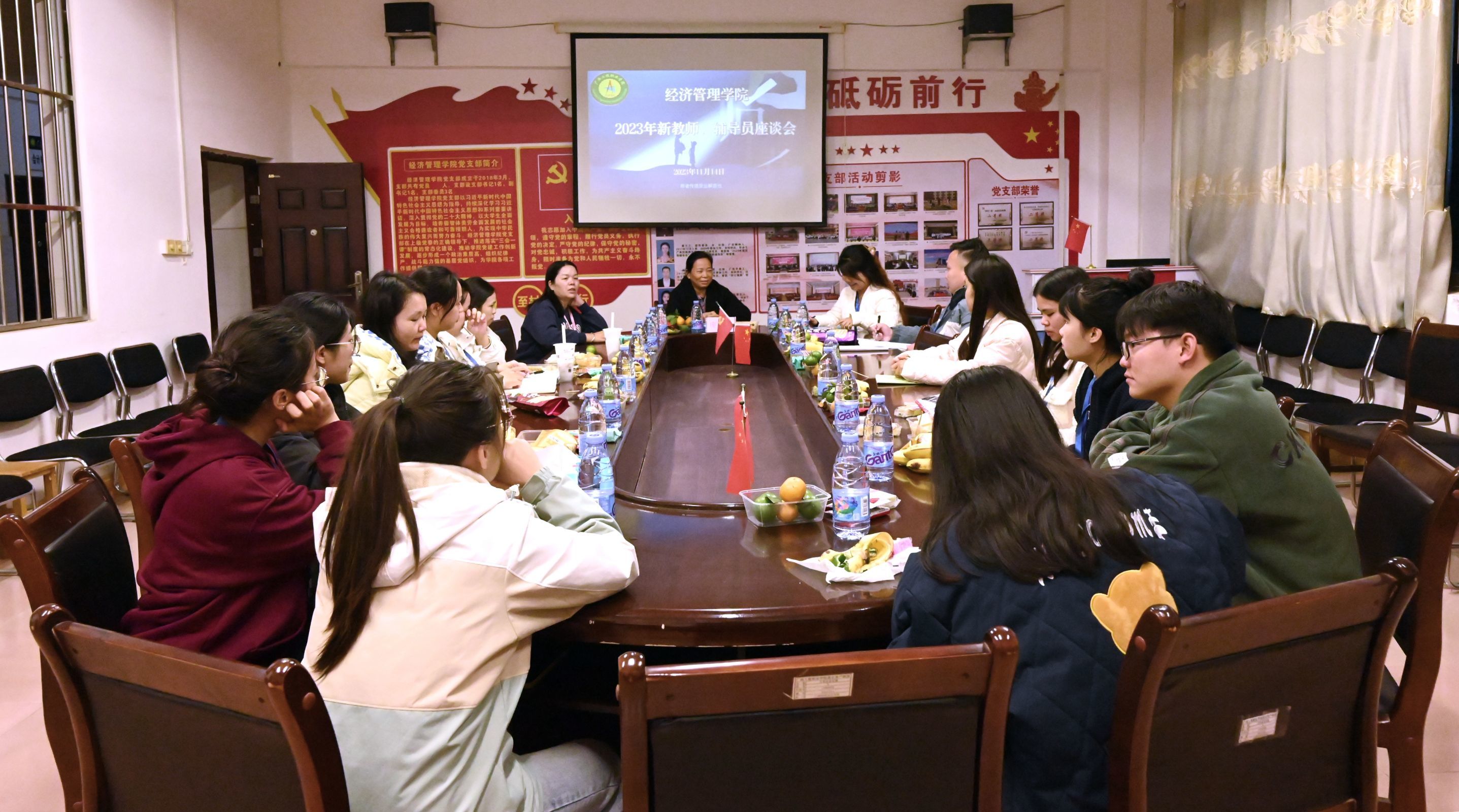 2023年11月14日,經(jīng)濟(jì)管理學(xué)院在302會(huì)議室舉行了新教師、輔導(dǎo)員心理健康座談會(huì)。此次座談會(huì)以“踐行教師育人初心 守護(hù)教師身心健康”為主題,座談會(huì)旨在促進(jìn)經(jīng)濟(jì)管理學(xué)院黨支部與新教師、輔導(dǎo)員間的交流互動(dòng),聽(tīng)取新教師、輔導(dǎo)員們?cè)诠ぷ鳌⑸钌嫌龅降膯?wèn)題和困難,關(guān)心教師的身心發(fā)展,提升教師的職業(yè)感、集體榮譽(yù)感,增強(qiáng)學(xué)院凝聚力,鼓勵(lì)教師以更加振奮的精神和昂揚(yáng)的姿態(tài)投入學(xué)院和學(xué)校的建設(shè)中,座談會(huì)由經(jīng)濟(jì)管理學(xué)院黨支部書(shū)記、院長(zhǎng)龐英連主持。經(jīng)濟(jì)管理學(xué)院黨支部副書(shū)記潘翠萍、辦公室主任雷紅、學(xué)生科長(zhǎng)李東英及學(xué)院新任教師、輔導(dǎo)員參加了座談。