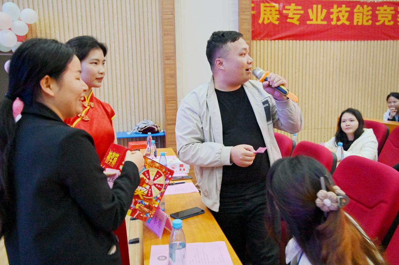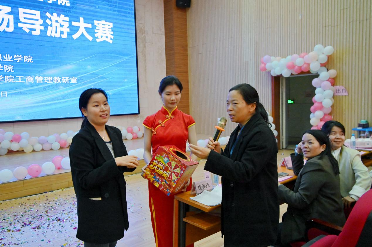 經(jīng)濟(jì)管理學(xué)院辦公室主任雷紅為獲得優(yōu)秀獎(jiǎng)的選手頒獎(jiǎng)