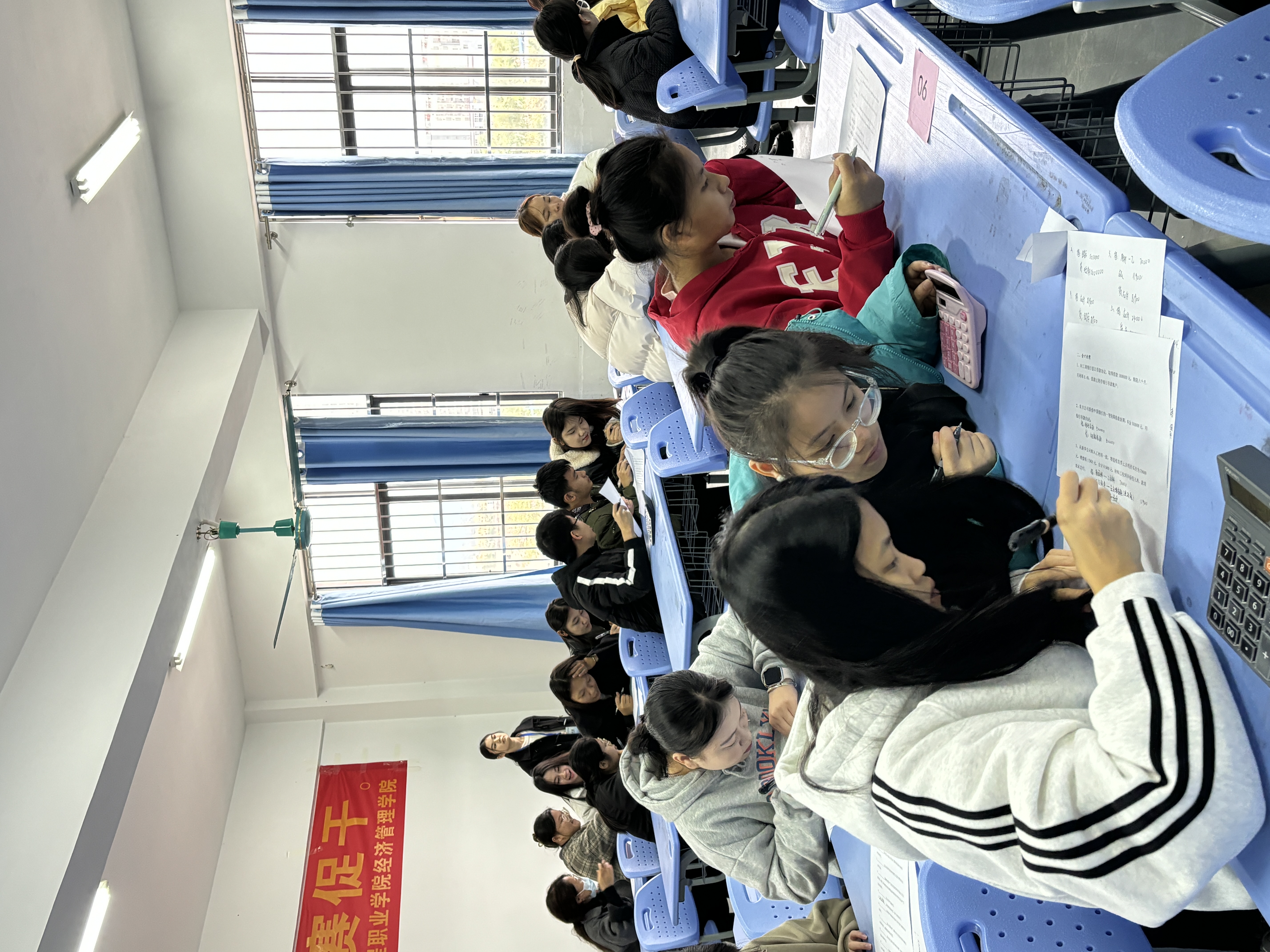 為了讓學生更好的了解大數(shù)據(jù)與財務管理、大數(shù)據(jù)與會計專業(yè)的技能特性,增強學生對專業(yè)課學習的熱情和動力,更好的營造出一個積極向上的校園學習環(huán)境和氣氛,讓學生更好的適應當今社會快速發(fā)展的節(jié)奏,增強自身專業(yè)性。2023年12月16日,經(jīng)濟管理學院舉行“技能無限,青春有為”第四屆會計技能大賽。本次比賽分為三個項目:翻打傳票比賽、點鈔比賽、科目知識競賽。決賽在第2教學樓舉行。