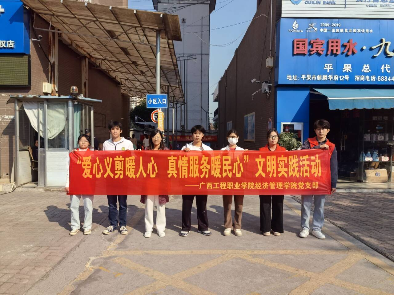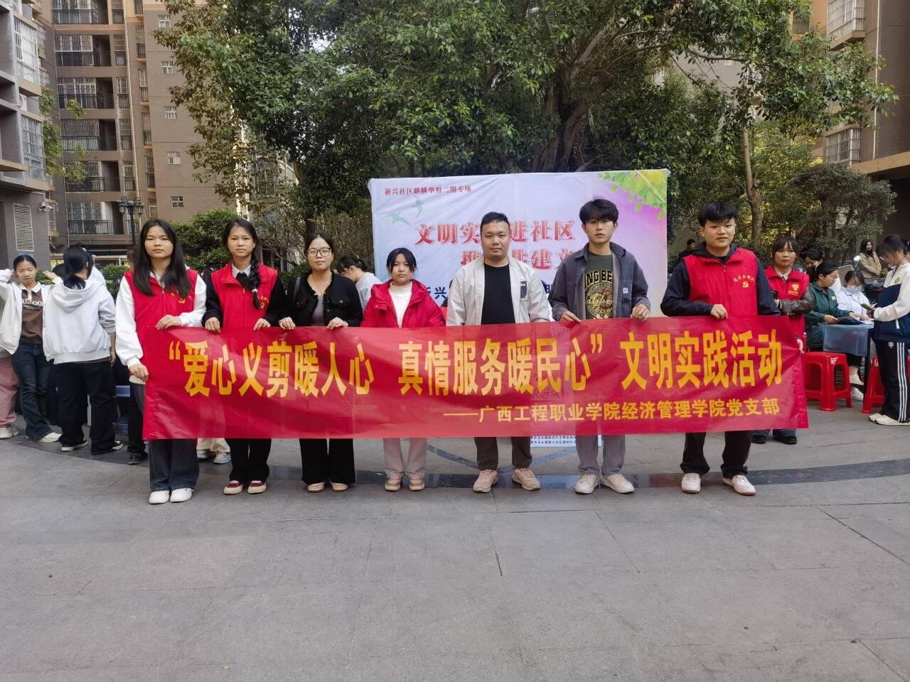學校作為社區(qū)網格中的成員單位,積極參與此次活動,經濟管理學院根據安排,組織師生代表前往平果市麒麟華府小區(qū)進行愛心理發(fā)活動。