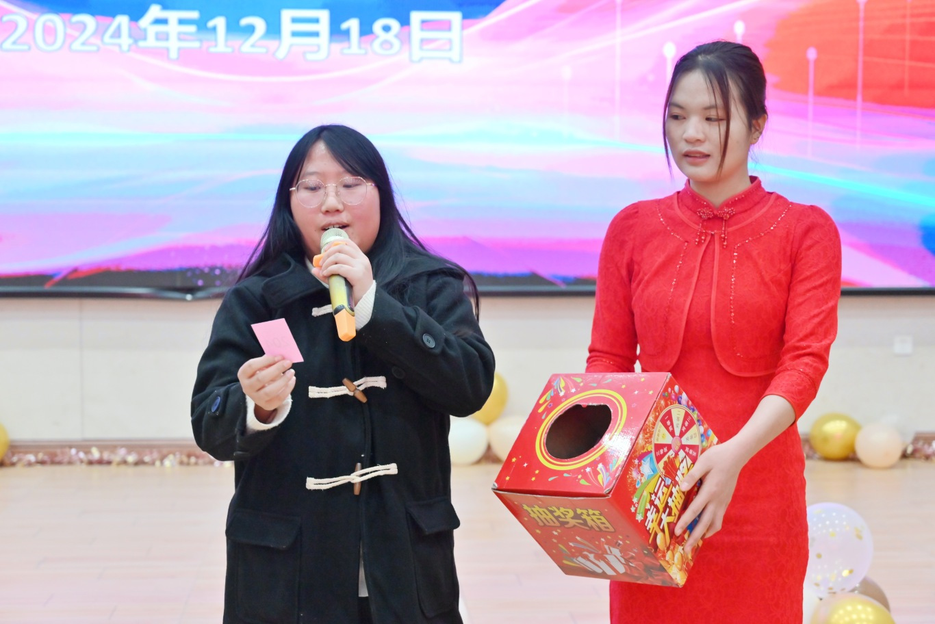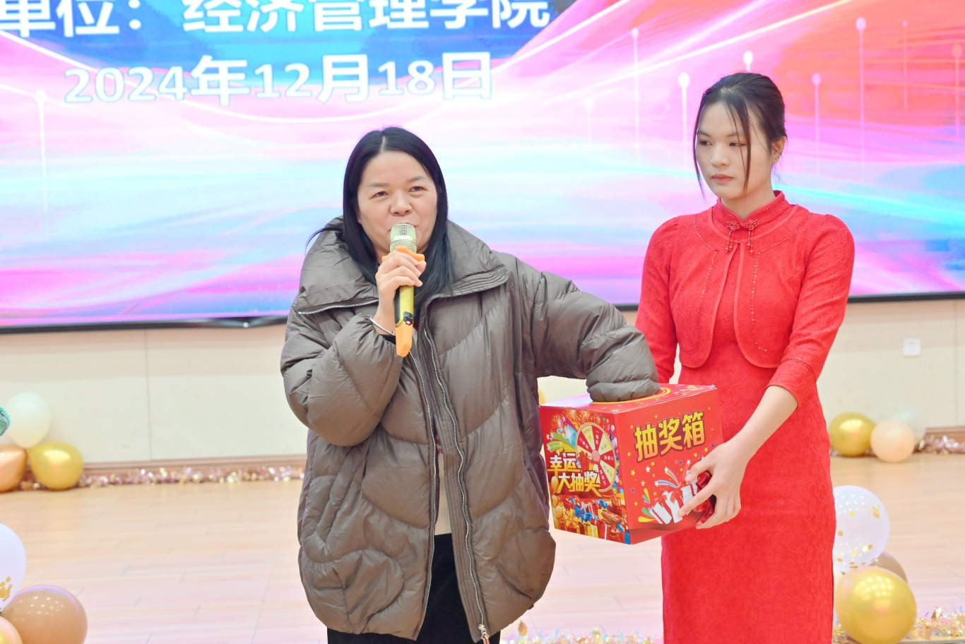 圖為財務(wù)處老師李裕萍現(xiàn)場抽取6名幸運兒
