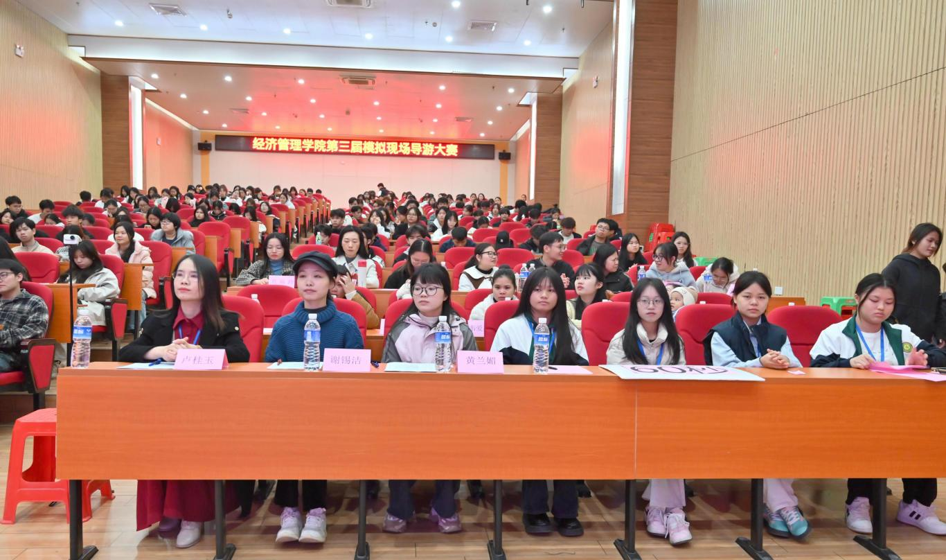 2024年12月18日,經(jīng)濟管理學(xué)院在學(xué)校圖文信息大樓一樓報告廳舉行第三屆“魅力導(dǎo)游,智慧領(lǐng)航”模擬現(xiàn)場導(dǎo)游大賽。本次大賽旨在通過展現(xiàn)導(dǎo)游風(fēng)采、以賽促學(xué)、以賽帶訓(xùn),激勵學(xué)生不斷加強業(yè)務(wù)知識的學(xué)習(xí)和技能訓(xùn)練,培養(yǎng)符合社會發(fā)展需要的高質(zhì)量的旅游服務(wù)人才。
