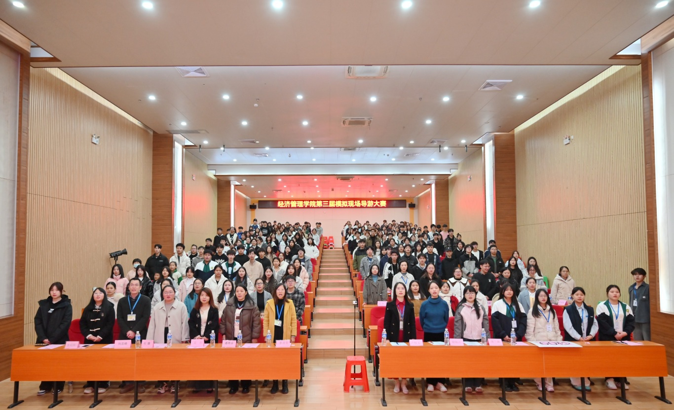 圖為經(jīng)濟管理學(xué)院第三屆模擬導(dǎo)游大賽現(xiàn)場