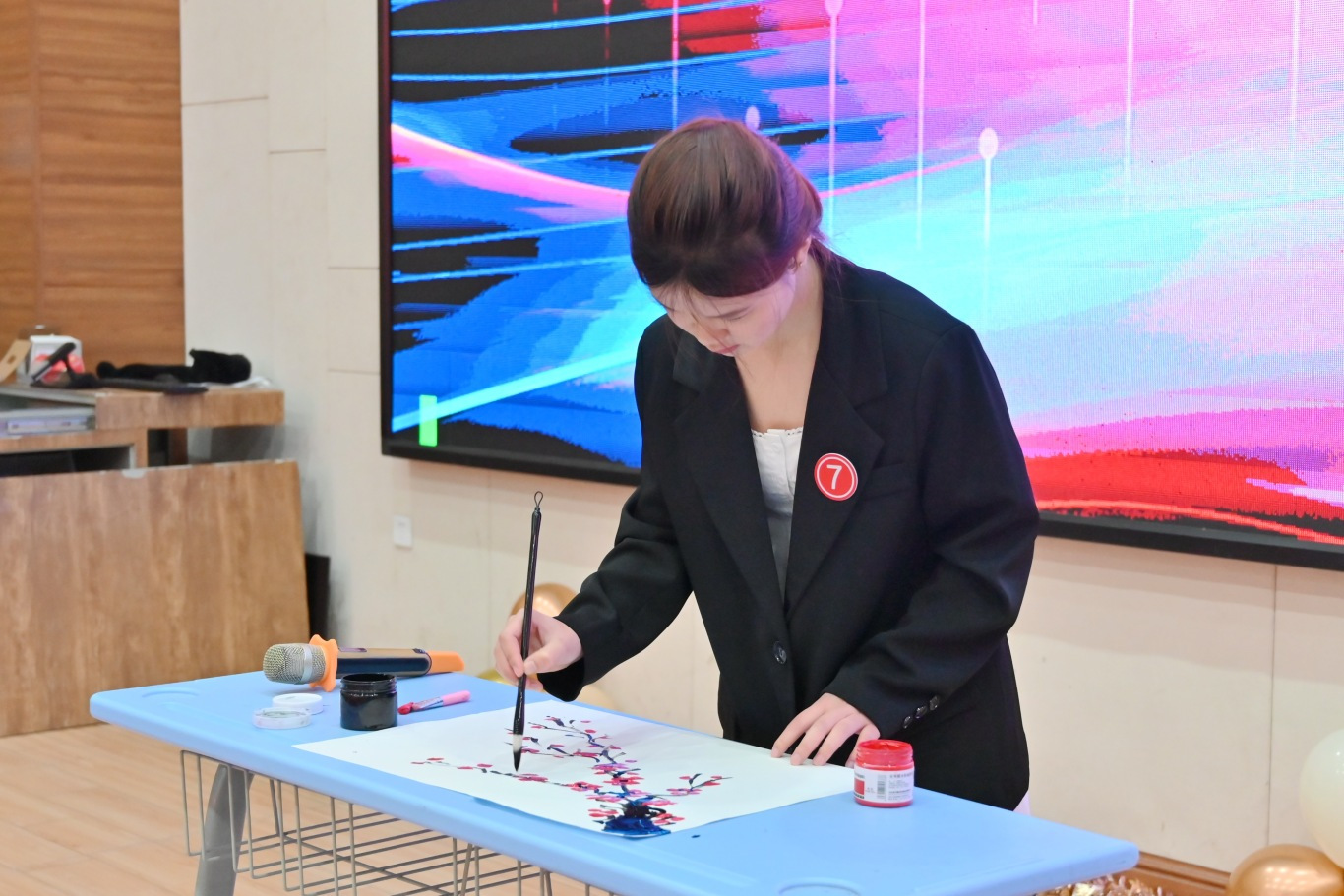 圖為學(xué)院黨支部副書記潘翠萍宣布比賽獲獎名次