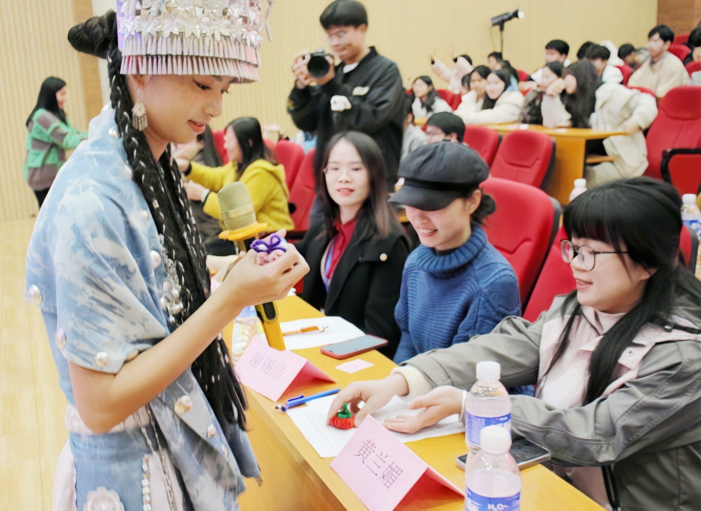 圖為學(xué)院辦公室主任雷紅現(xiàn)場抽取6名幸運兒