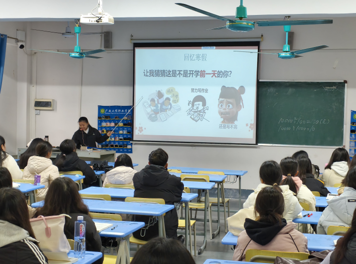 各年級(jí)輔導(dǎo)員及任課教師結(jié)合熱門國(guó)漫IP《哪吒之魔童鬧?!?,以太乙真人的智慧導(dǎo)師形象,將“我命由我不由天”的熱血勇敢精神注入教育實(shí)踐,從學(xué)情分析、誠(chéng)信考試、安全管理、心理健康、防詐騙、春季傳染病預(yù)防等多個(gè)方面展開(kāi)講解,助力學(xué)生實(shí)現(xiàn)認(rèn)知轉(zhuǎn)換、目標(biāo)重構(gòu),促進(jìn)學(xué)生行為習(xí)慣養(yǎng)成。2024級(jí)輔導(dǎo)員結(jié)合上一學(xué)期學(xué)習(xí)和入學(xué)適應(yīng)情況,從學(xué)業(yè)規(guī)劃與職業(yè)生涯規(guī)劃的角度對(duì)2024級(jí)學(xué)生進(jìn)行引導(dǎo),以“只要敢于改變,就會(huì)有無(wú)限可能”的燃情寄語(yǔ)收束,喚醒學(xué)生學(xué)業(yè)精進(jìn)、同窗共進(jìn)、自我革新的成長(zhǎng)內(nèi)驅(qū)力,幫助同學(xué)們迅速適應(yīng)新學(xué)期的學(xué)習(xí)生活,以積極飽滿的狀態(tài)迎接新的挑戰(zhàn)。