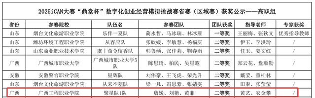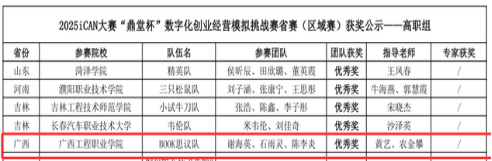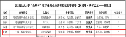 圖為2025iCAN 大賽 “鼎堂杯” 數(shù)字化創(chuàng)業(yè)經(jīng)營模擬挑戰(zhàn)賽省賽(區(qū)域賽)獲獎情況圖片