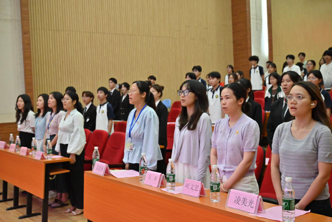 圖為全體師生起立,奏唱共青團(tuán)團(tuán)歌圖片