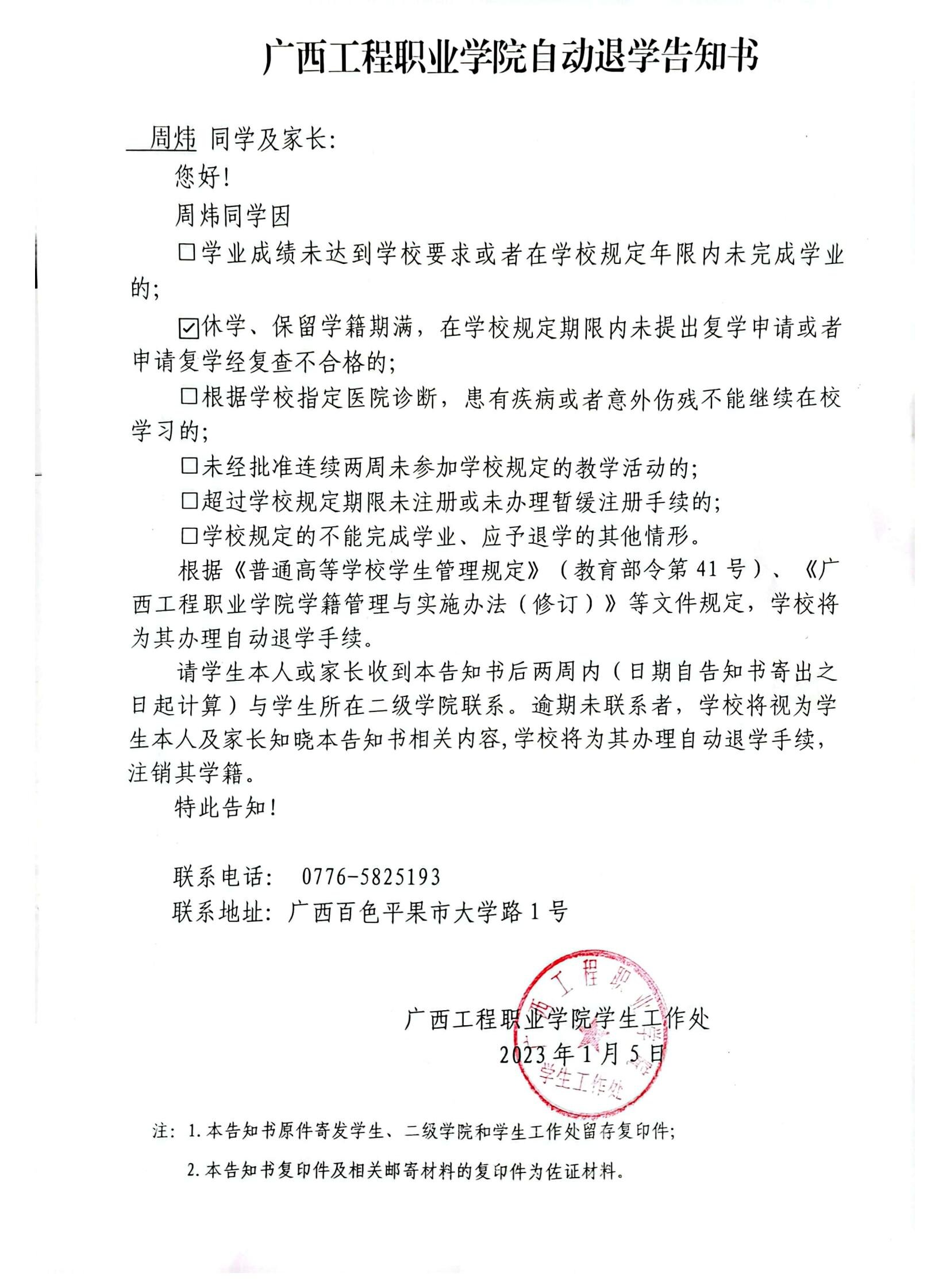 上一篇:廣西工程職業(yè)學院自動退學告知書/經(jīng)濟管理學院
