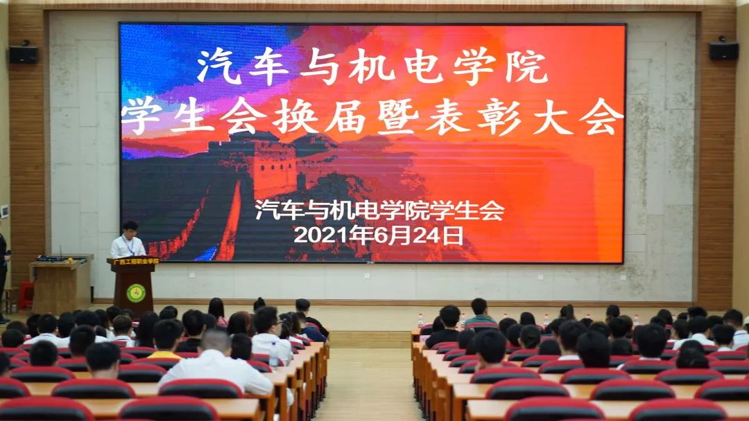 6月24號19:00,汽車與機電學院學生會在圖文信息大樓召開學生會換屆暨表彰大會。本次會議參會人員:全體學生會成員,學院副院長彭家官、輔導員、嘉賓等。