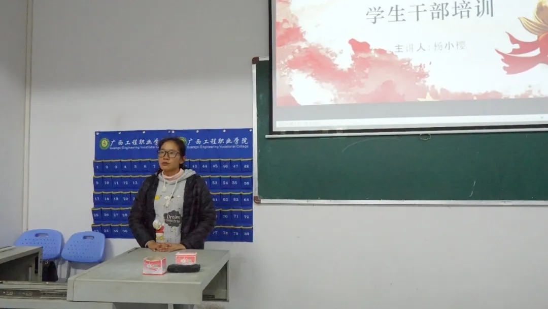 汽車與機(jī)電學(xué)院分團(tuán)委書記楊小櫻老師發(fā)表講話,強(qiáng)調(diào)班干要提升自己的管理能力、樹立良好形象,強(qiáng)化自身的心理素質(zhì)、身體素質(zhì)、文化素質(zhì)。